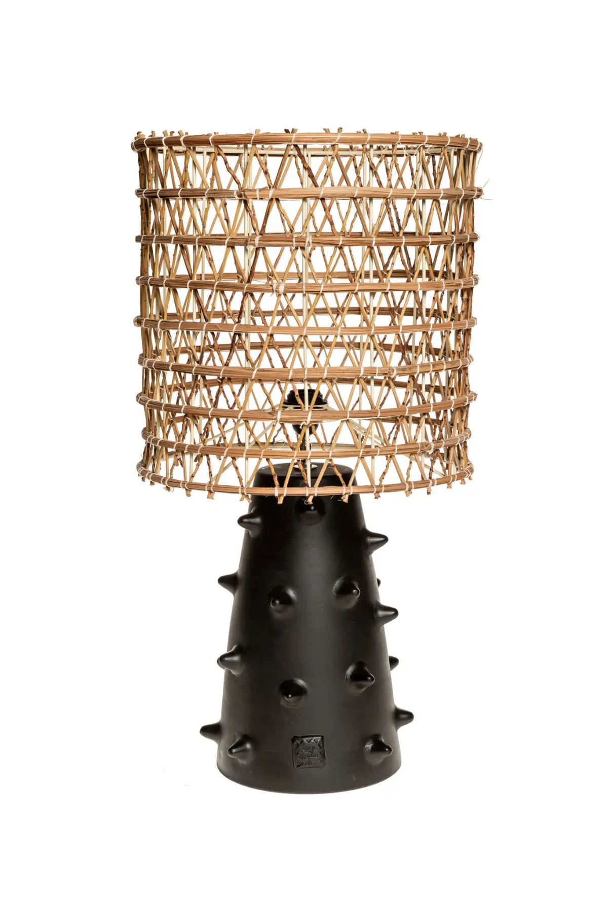 Material: Date palm & ceramicOrigin: TunisiaSize: H85 x Ø40cmDesigner: Philippe Xerri for Rock The KasBahColor: Natural & blackwebsite sell: https://www.couleurlocale.eu/nl/zwarte-tafellamp-n2-dadelpalm.html