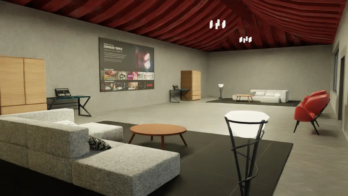 This building has 2 floors. ground floor is empty for stuff and first floor has couch and TV to hangout.