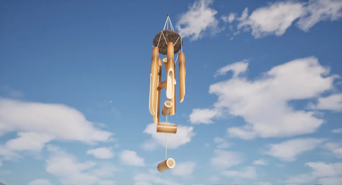 "Let the gentle breeze bring your world to life with Balinese bamboo wind chimes. Ideal for patios, tropical huts, or spiritual spaces, their soft, organic tones and elegant form add a peaceful ambiance to any scene.