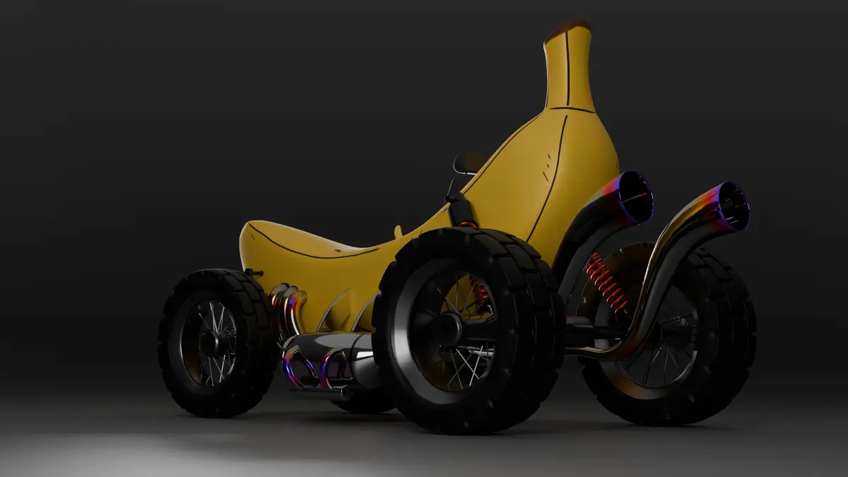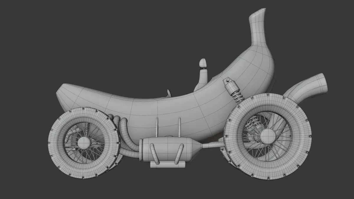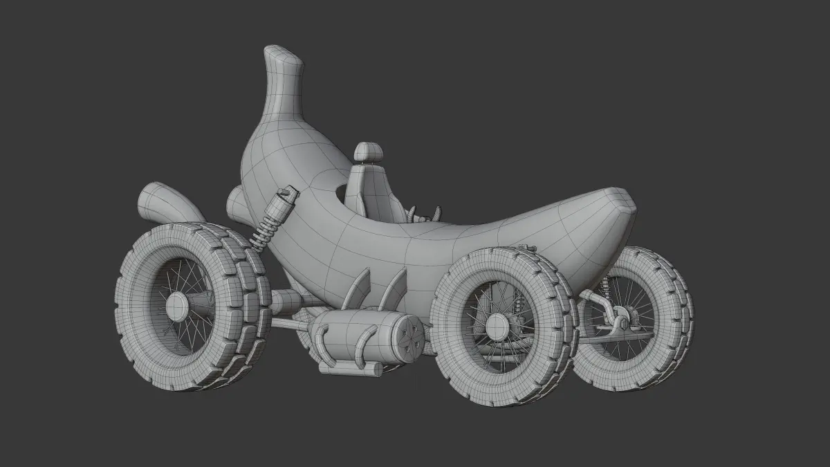 3D model of a 3D game-ready Banana Car, made using a concept art by gatring3. This high-quality model ensures that it is optimized for use in video games. This model is created with attention to detail and intricate geometry.