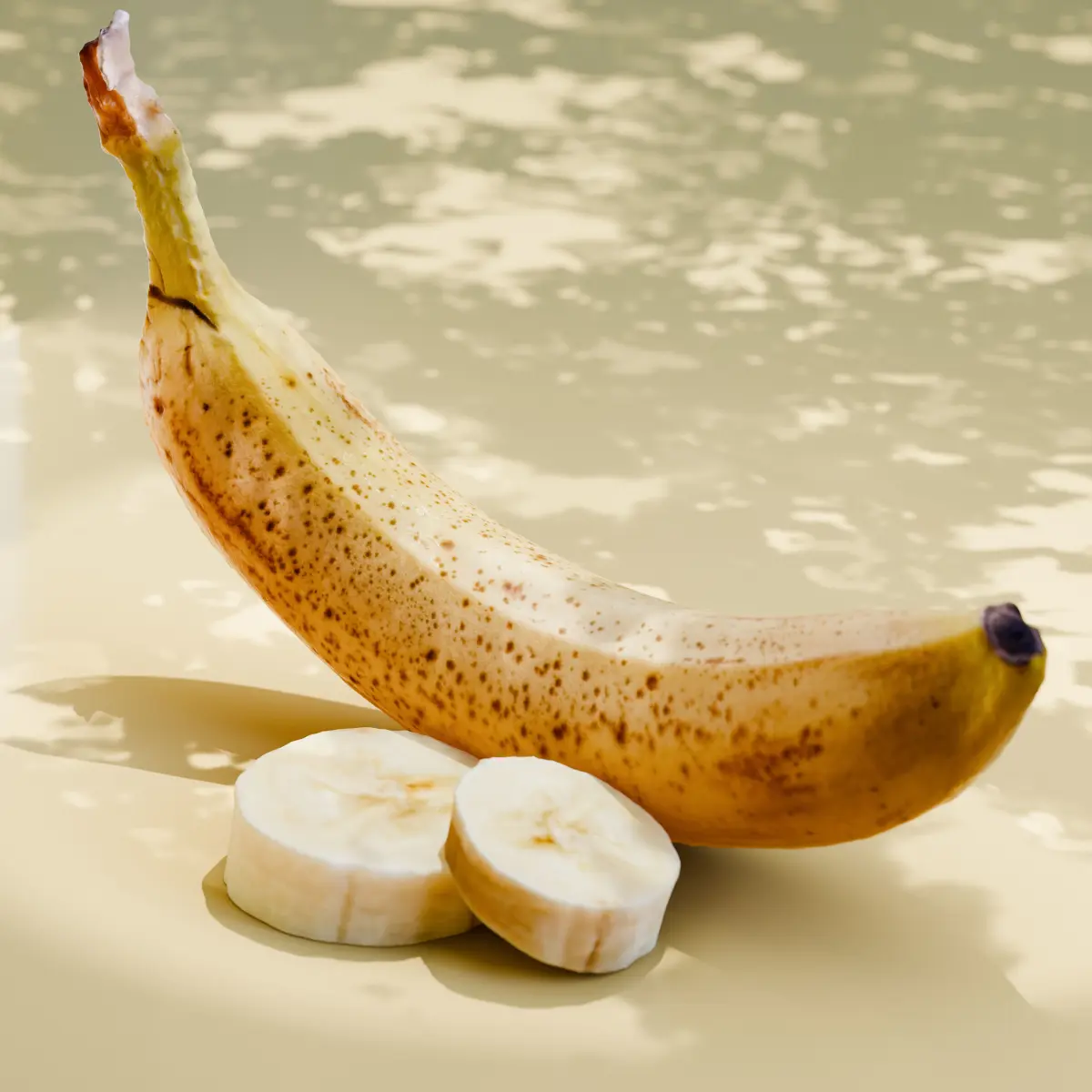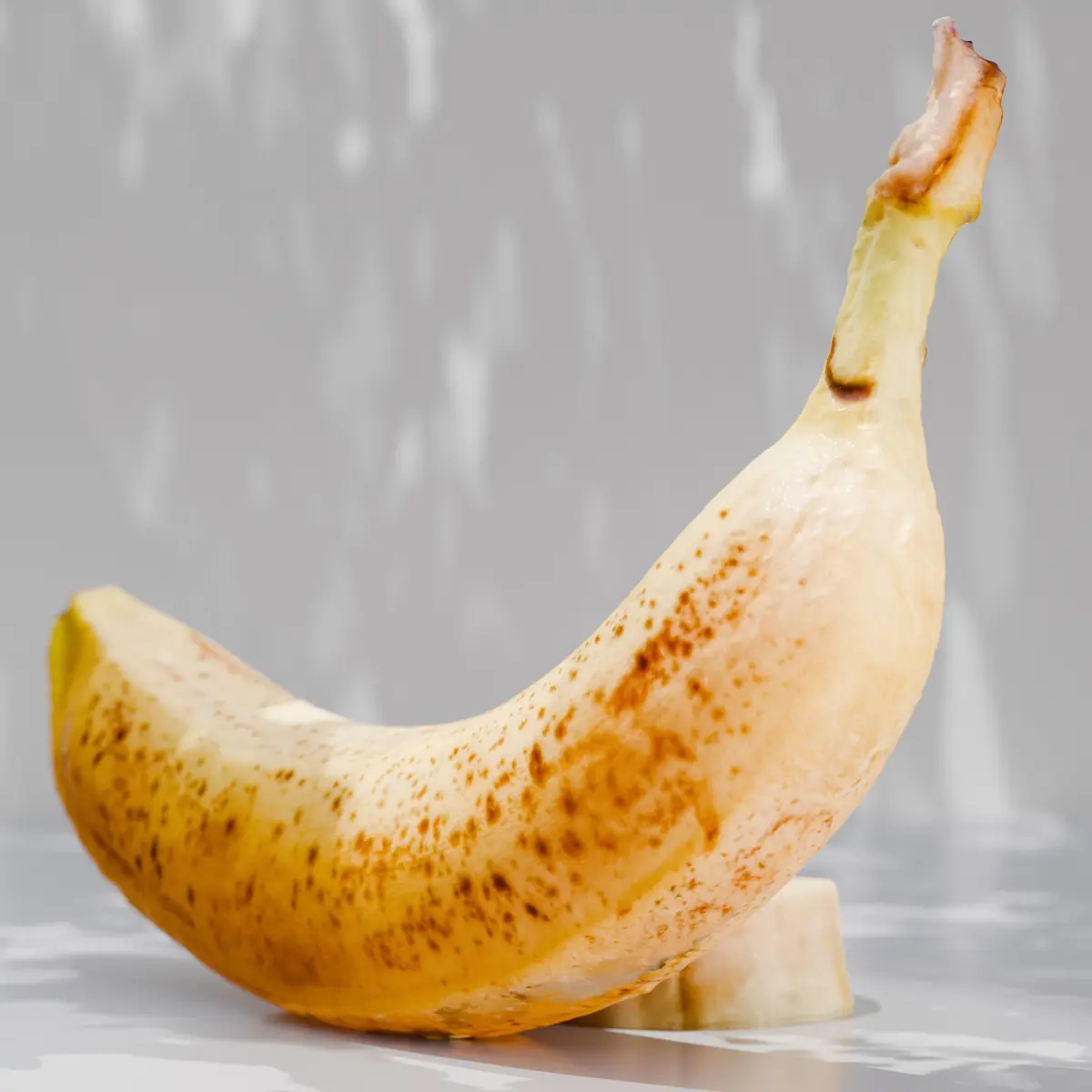 Banana and Banana Slice . Scanned by me with the highest quality and 10k Textures . Diffuse map / Roughness Map / Scpecular Map / Normal Map comes with render setup including light and simpe white background with custom shader that allows the Light to pass through the meshes for extra Realism . Blend file . also can export to other 3d apps . baked textures .