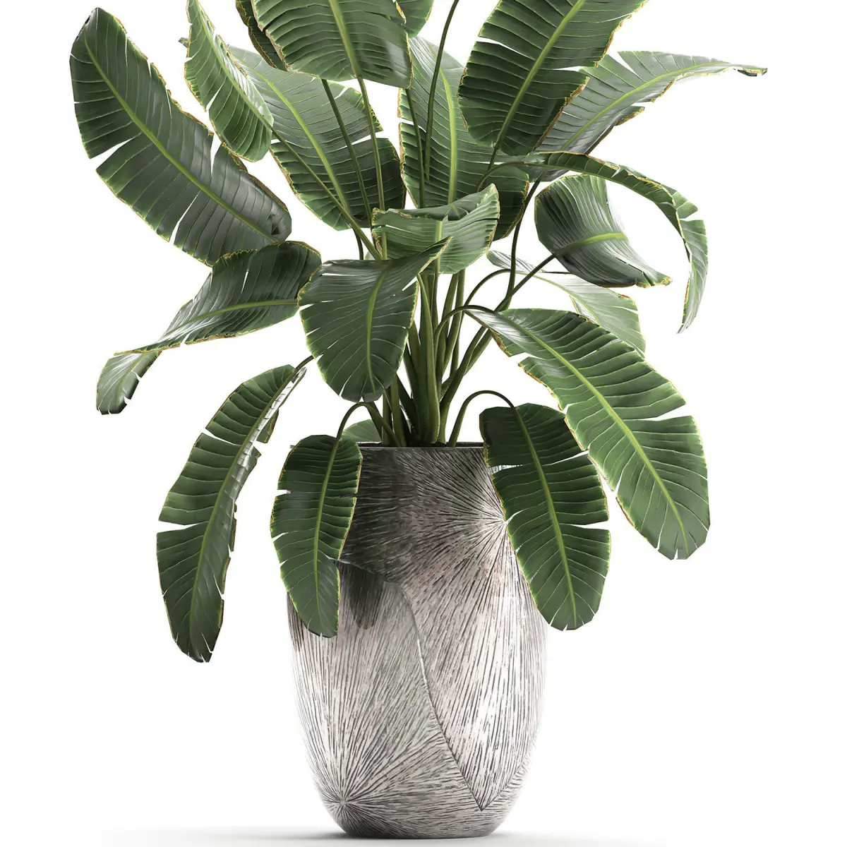 Decorative banana palm for the street and interior in a luxury flowerpot.Houseplantsexotic plantsTropical plants in potsluxurybanana palmRavenala madagascariensisStrelitzia