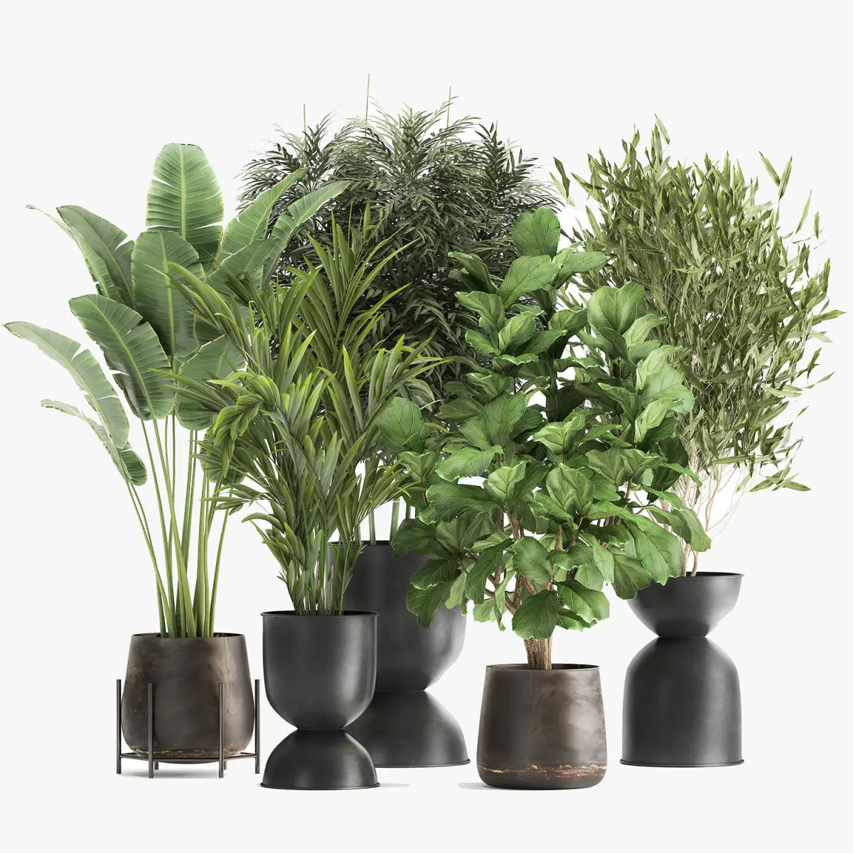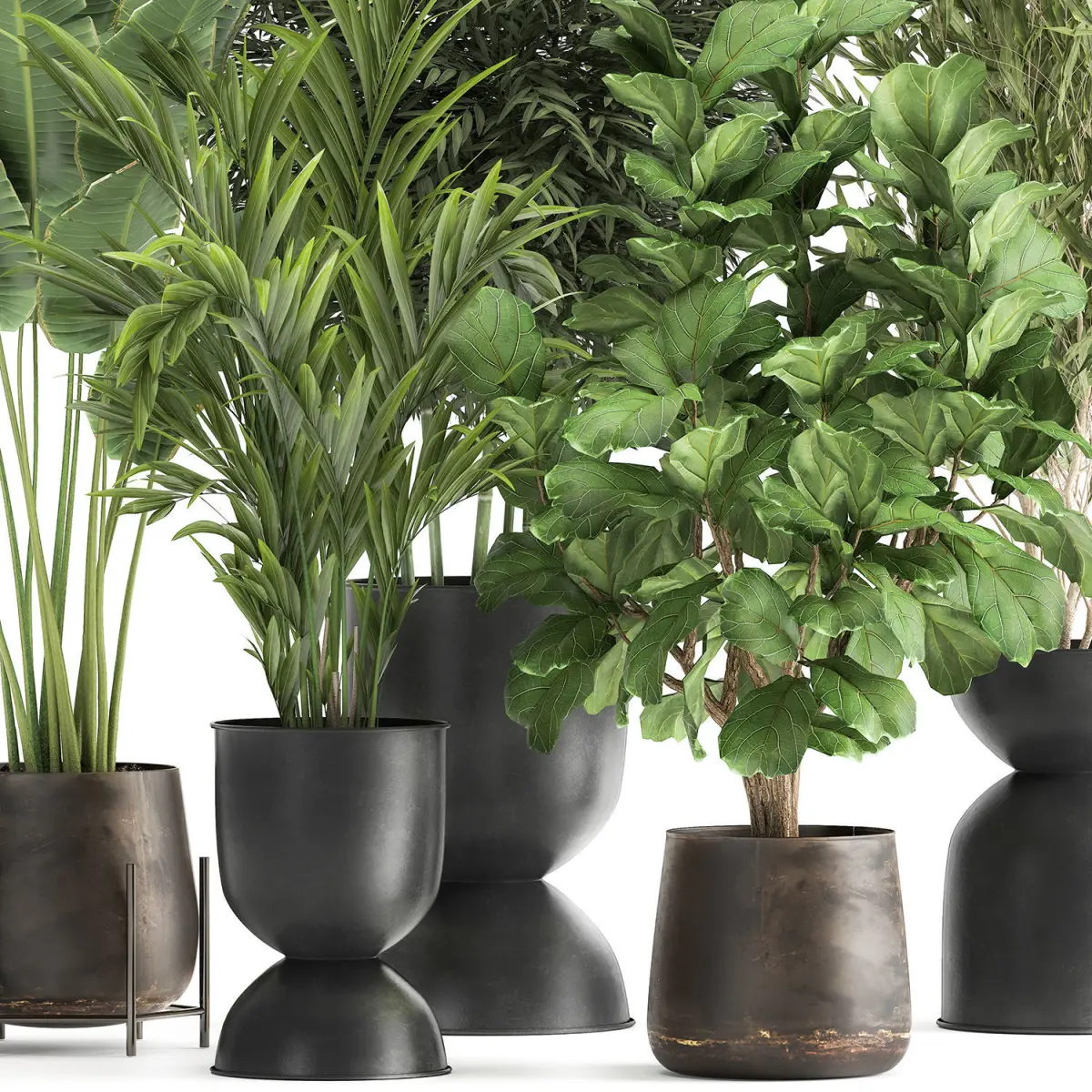 Decorative plants for outdoor and interior in metal pots.Pot - RECLAIMED ARTIZAN IRON COPPA POTPot - Hourglass Pot Large | FERM LIVINGHouseplantsexotic plantsTropical plantsDecorative trees in flowerpotsDecorative palmbanana palmRavenala madagascariensisStrelitziaFicus lyrataFicus Binnendijkii, Alii