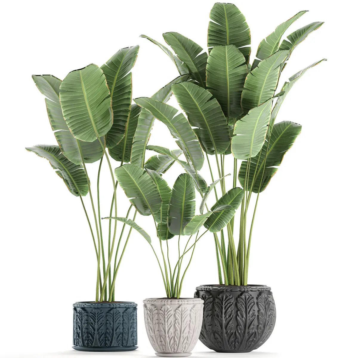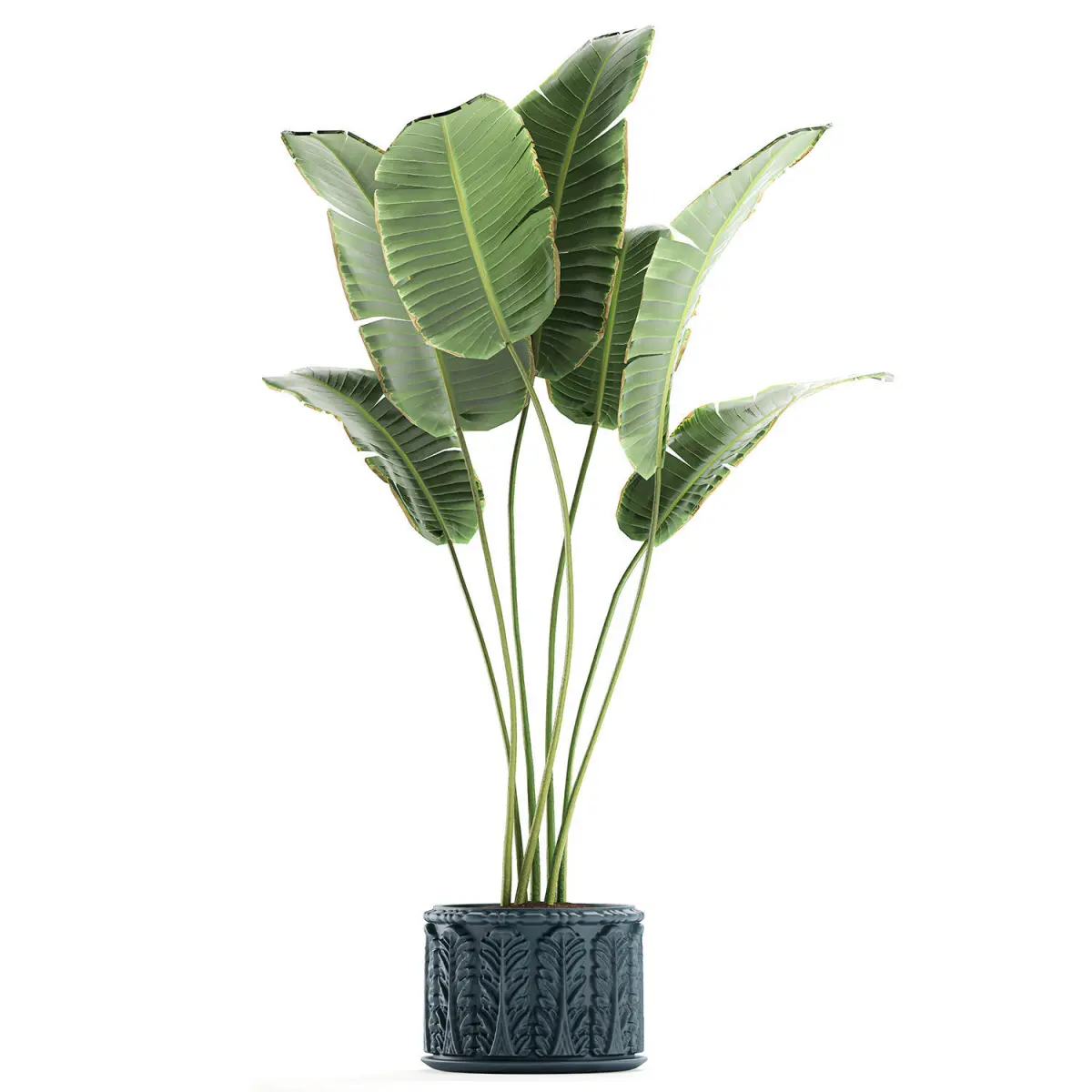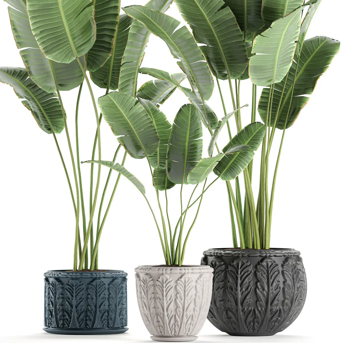 Decorative plants for the interior in a classic flowerpot.Houseplantsexotic plantsPotted banana palmRavenalabanana palmRavenala madagascariensisstrelitziaStrelitziaClassic flowerpot, monogram