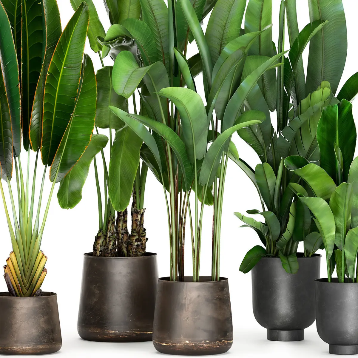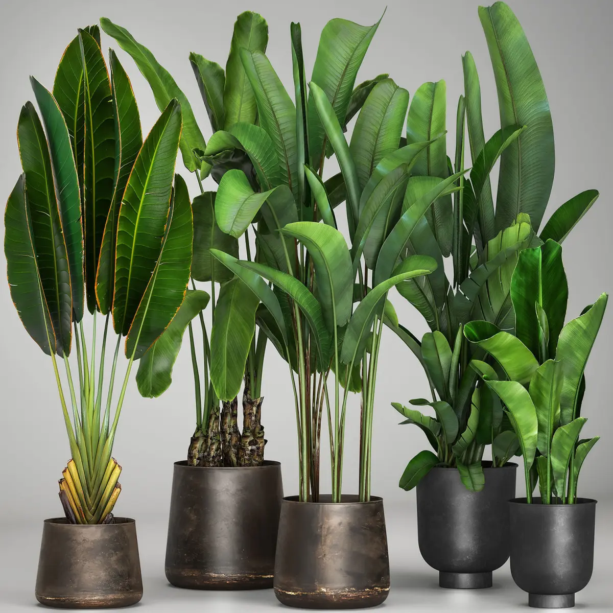 Decorative plants for outdoor and interior in metal pots.Pot - RECLAIMED ARTIZAN IRON COPPA POTFlowerpot - Vig Planter L Set 2pcs, GrayHouseplantsexotic plantsTropical plantsDecorative palmbanana palmRavenala madagascariensisStrelitzia