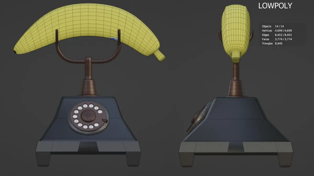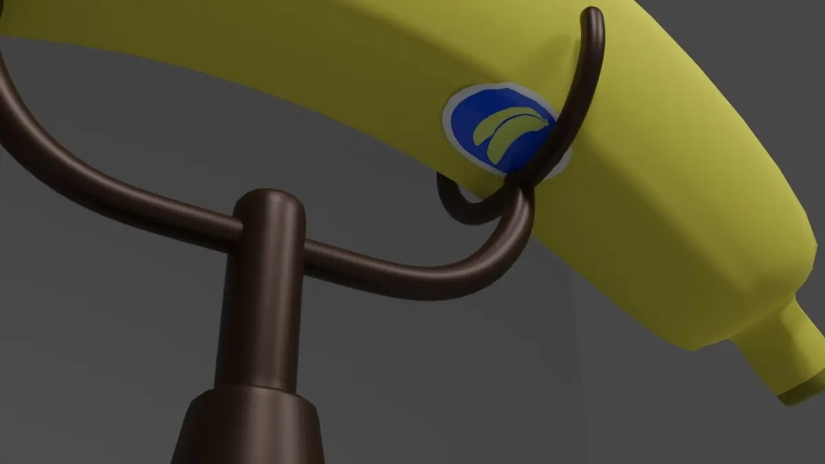 Banana for a phone made with Blender 2.9. I had the idea to make this fun project after seeing another person put a scope on a banana. The sticker and the numbers have textures. The rest of the meshes are covered with simple materials. Let you're freak fly in a possible possible planet of the apes type world.
