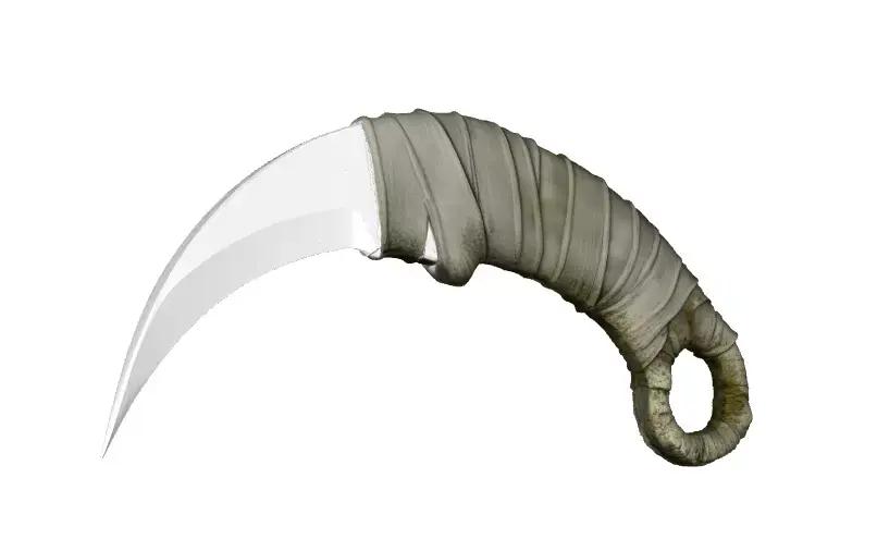This Bandage Karambit 3D Model features a rugged survival-style design with a handle tightly wrapped in worn bandages, giving it a realistic improvised and battle-used appearance. The wrapped grip enhances the raw, tactical aesthetic, making it perfect for survival, post-apocalyptic, horror, or realistic game environments.The blade features a clean, sharp karambit shape, while the bandage wrapping adds storytelling detail, suggesting field repair or custom modification by its user.
