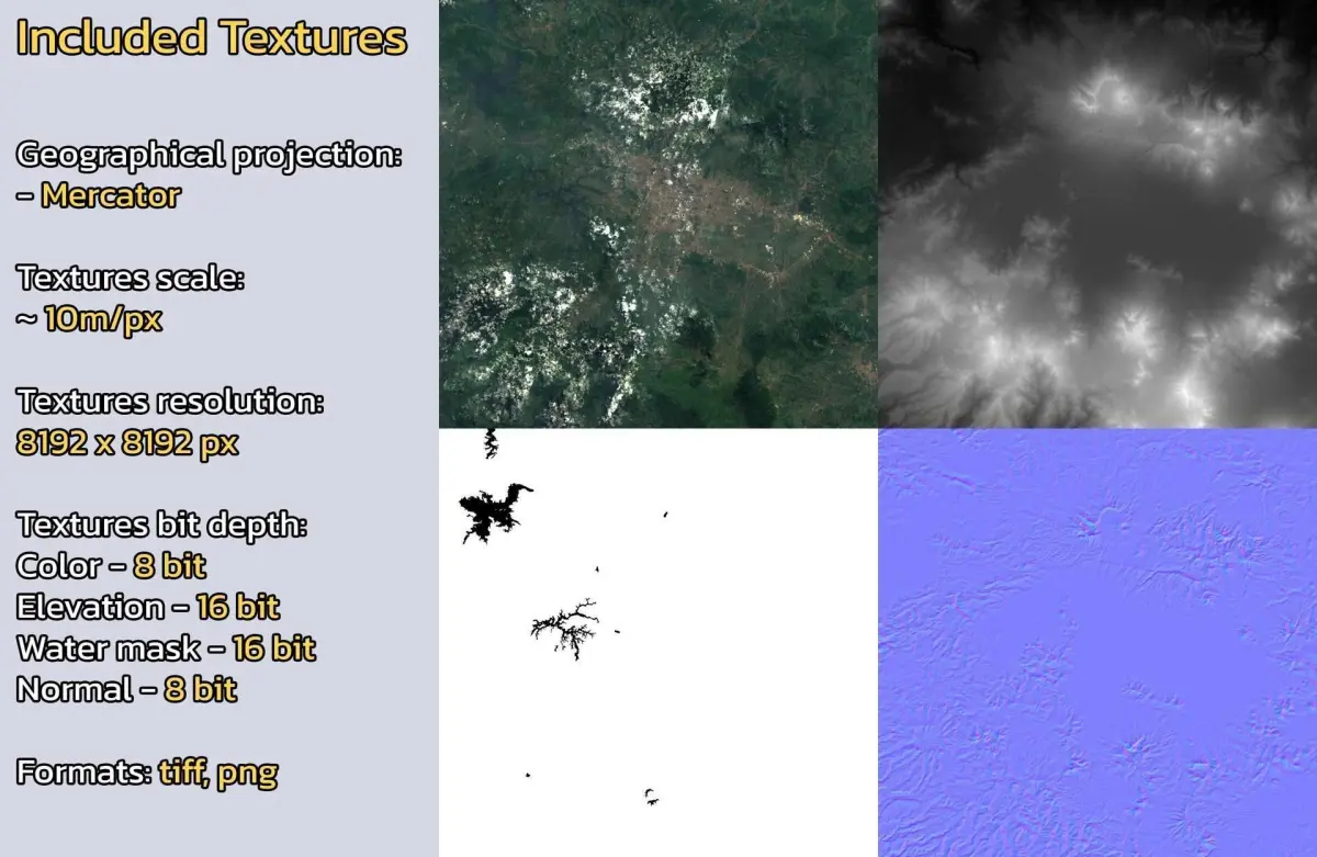 Warning: minor clouds/artifacts may be present on the diffuse color satellite texture due to the nature of the dataset. Check product images.