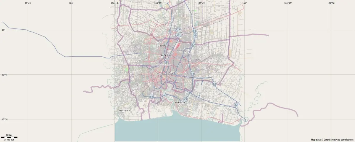 3D representation of Bangkok City using 2019 map data. Roads, railway, land, water, buildings are made using real world data. Buildings are accurately placed and resembles the real world object up to some extend. Please note that random buildings (varying height) are added to those area where real world data is not available.