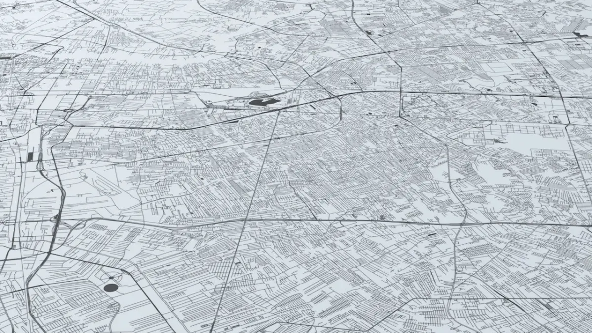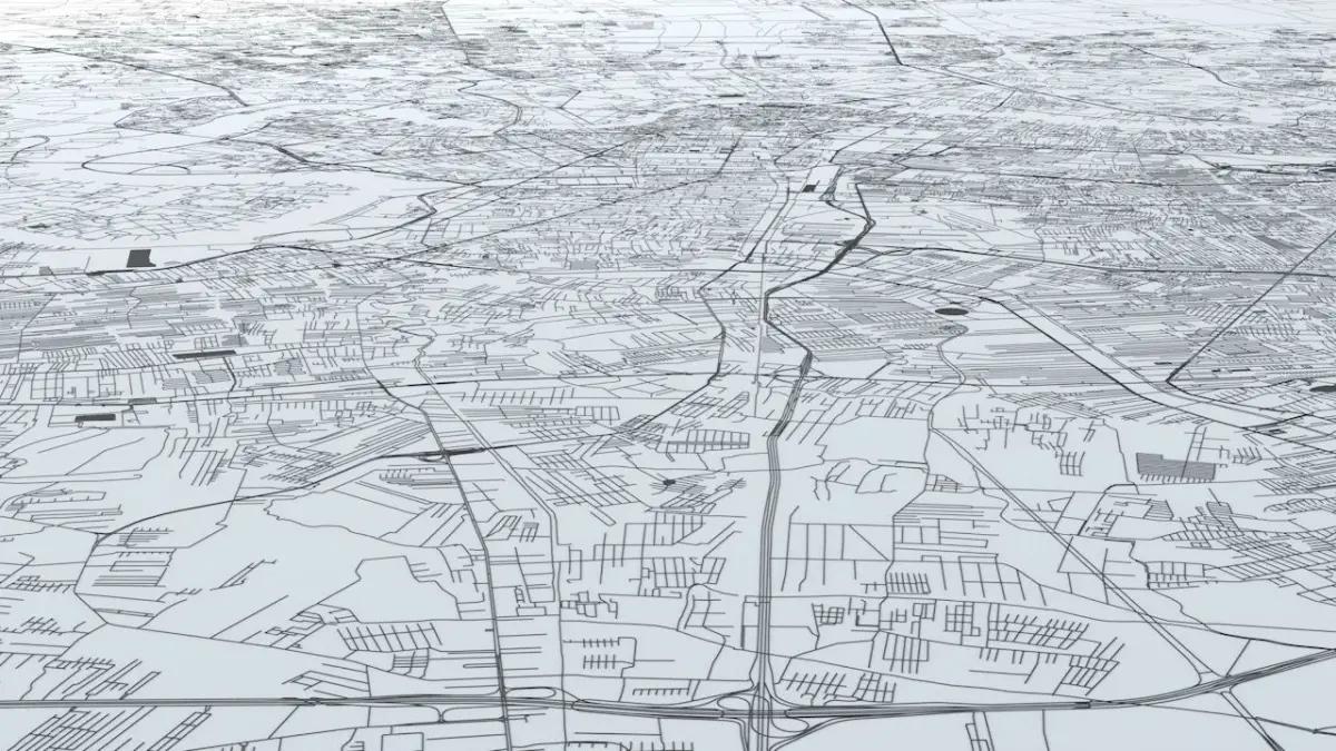 - the model is positioned on a flat surface (road network is on the “floor” - no elevation data included)