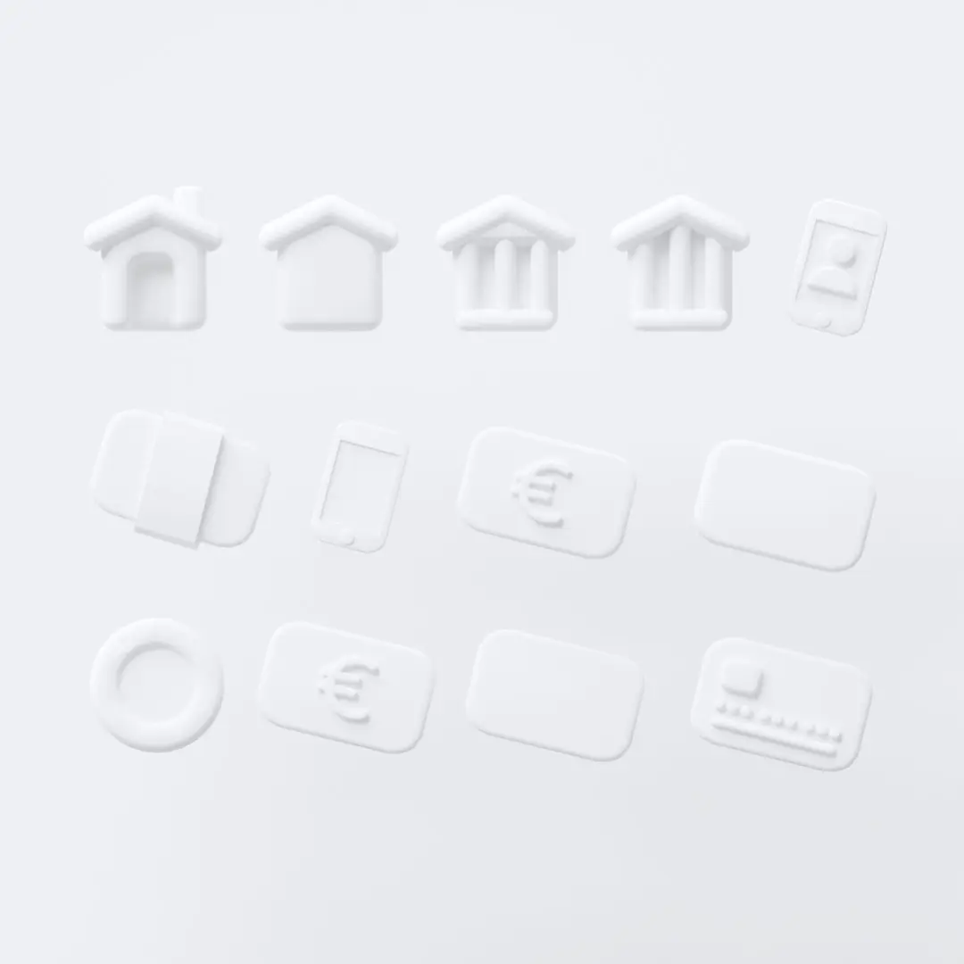 13 bank/ finance/ money themed 3d icon models.All models are textureless.Low poly, minimalistic, modern, customisable.Including: