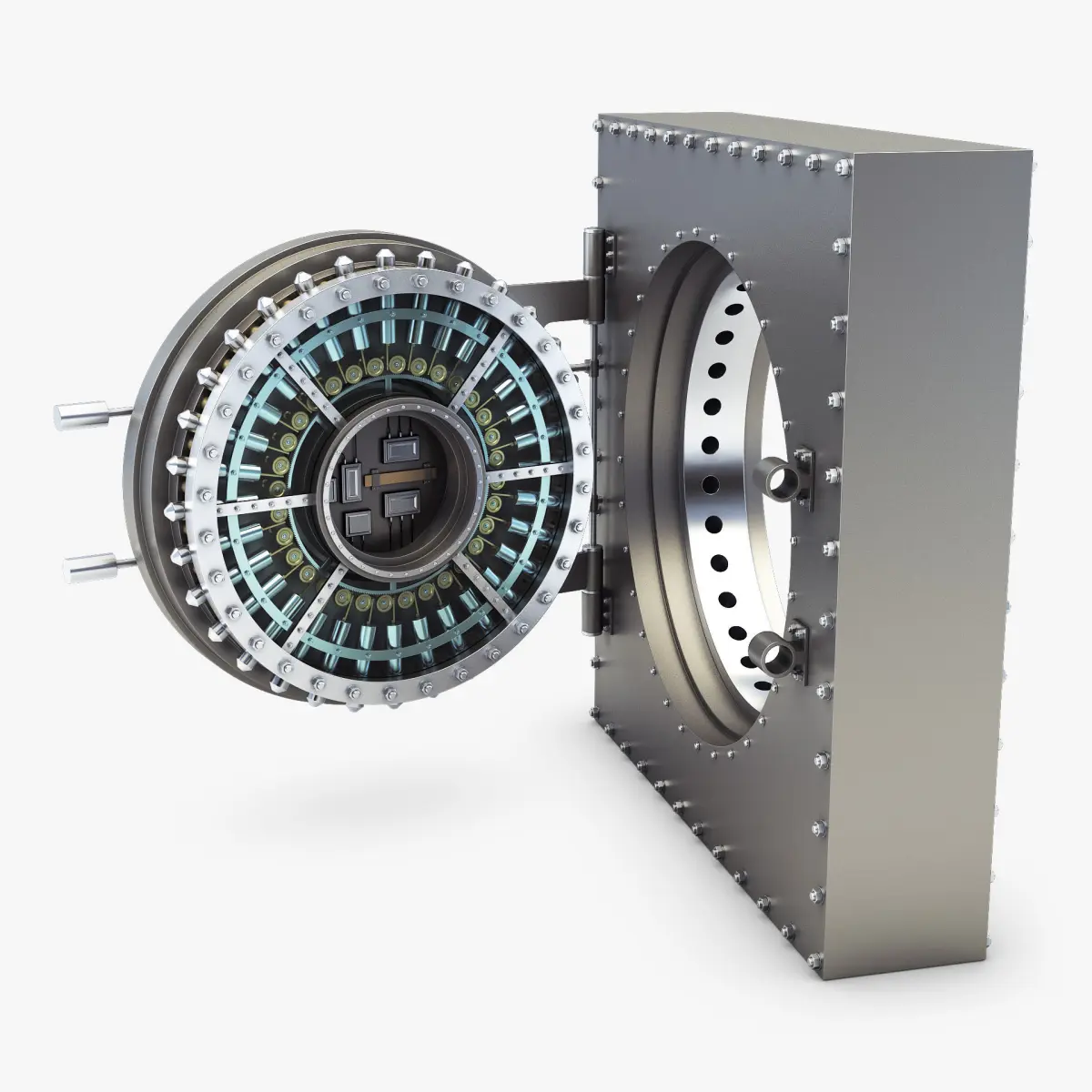 3D Model name: Bank Vault Door v 1This 3D Model can be use in different projects, for example: high-quality renders, illustrations, video clips, videos or film industry, etc. The 3D model was made by polygonal method, the details were carefully worked out. Materials included in the 3D model. Does not need for cleaning, just add the model to scene and start rendering.