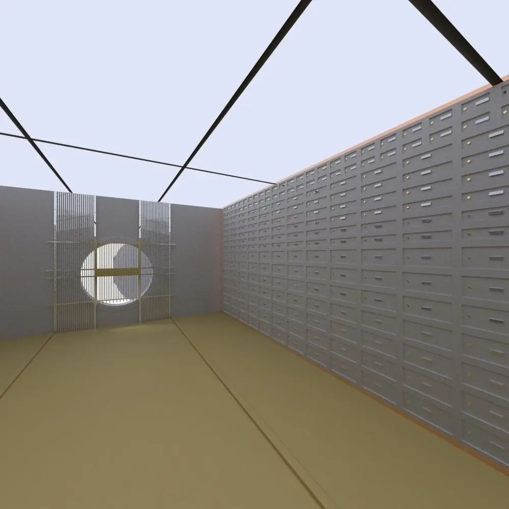 Model: Bank VaultMedia Type: 3D Model Geometry: Quads/Tris Polygon Count: 653428Vertice Count: 678693Textures: No Materials: Yes Rigged: No Animated: No UV Mapped: Yes Unwrapped UV's: Yes Overlapping