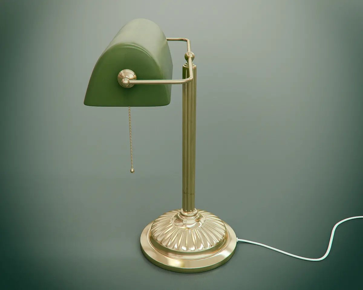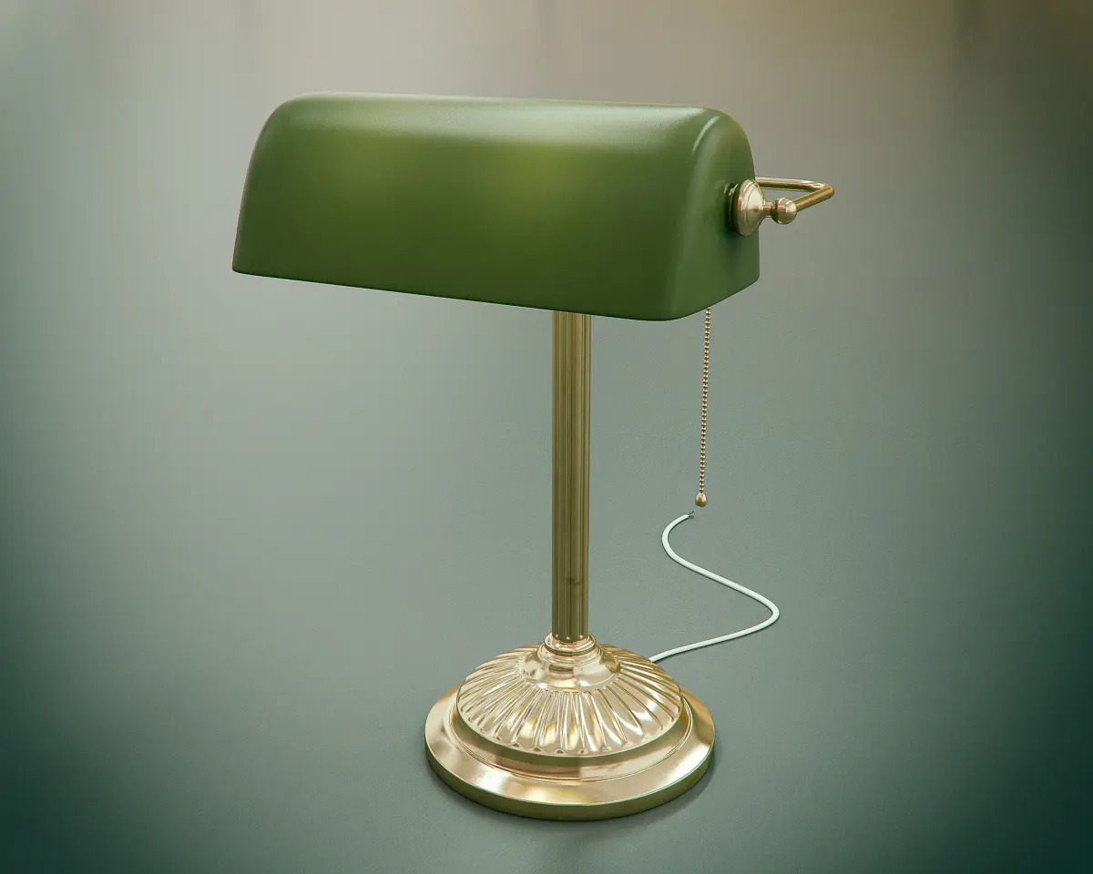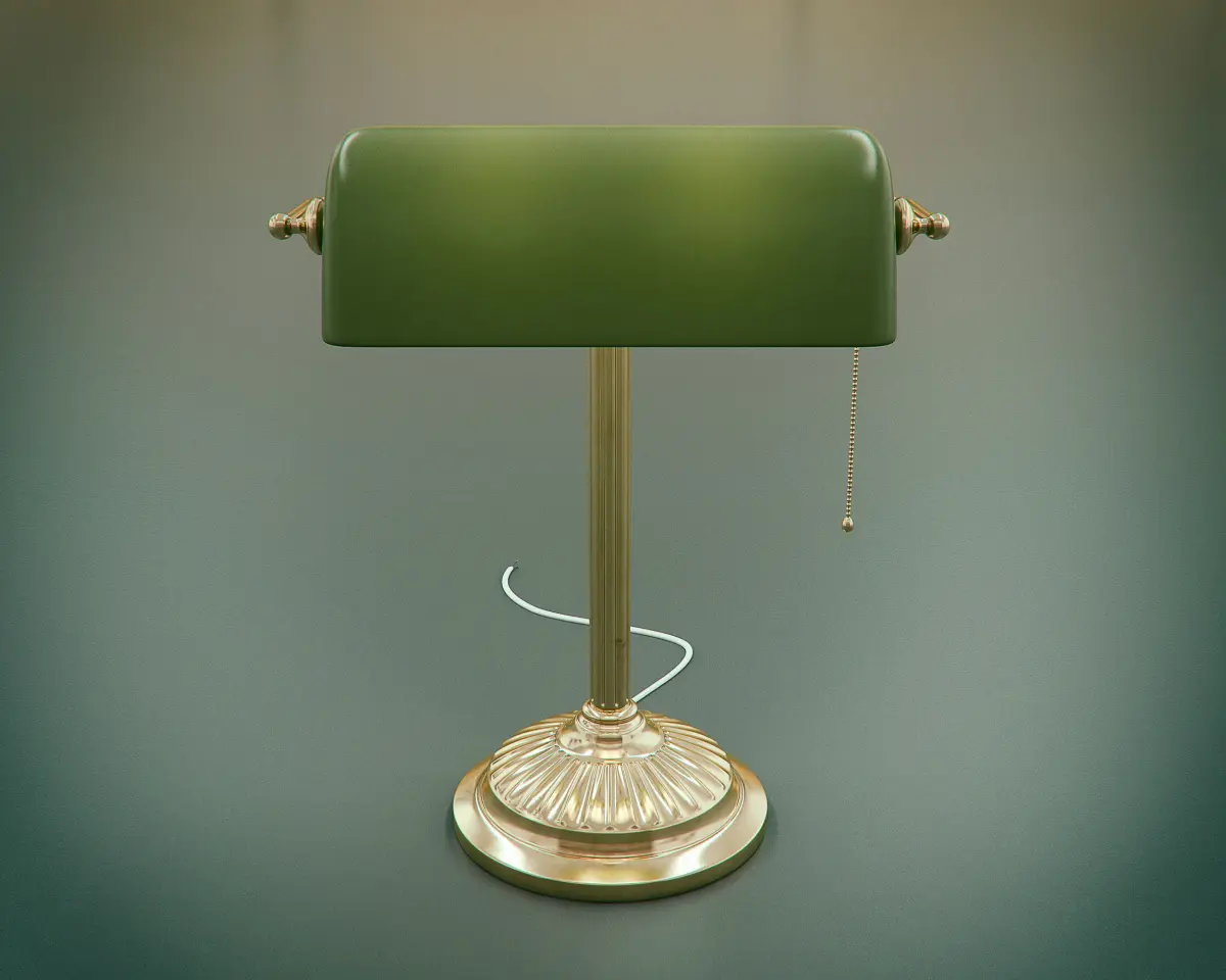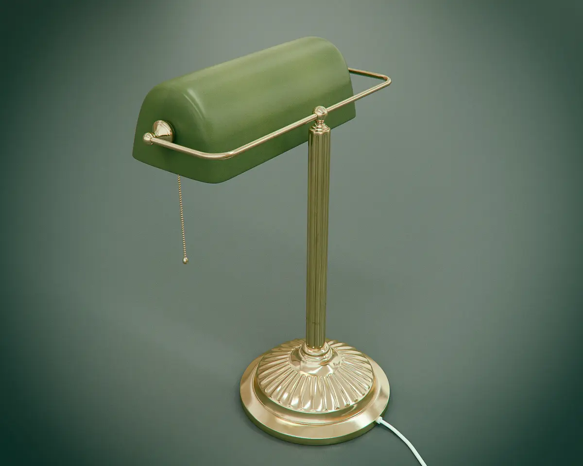 A detailed, high poly model of iconic 'Banker's lamp'.Mapped and fully textured.