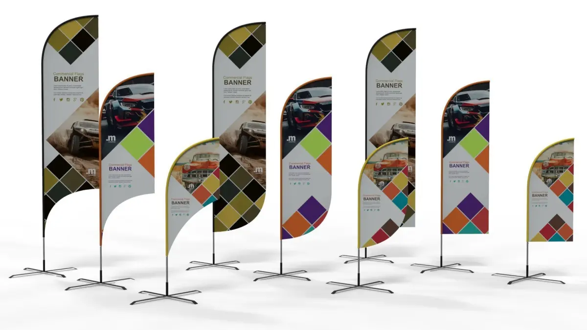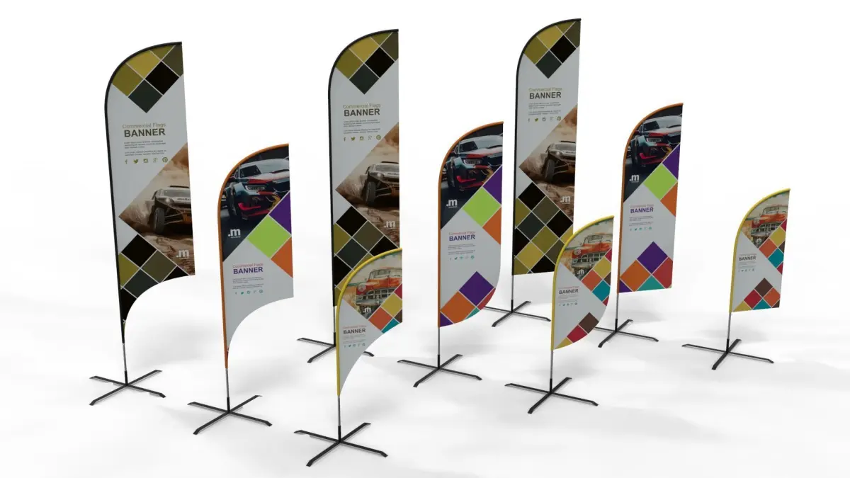 This 3D model pack features a complete set of 9 commercial flag structures, perfect for advertising, events, retail exhibitions, and public spaces. The collection includes three desing (Straight, Feather Tail, and Teardrop Style) each presented in three heights: 2.2 meters, 3.2 meters, and 4.2 meters, offering flexibility for indoor and outdoor visual branding setups.