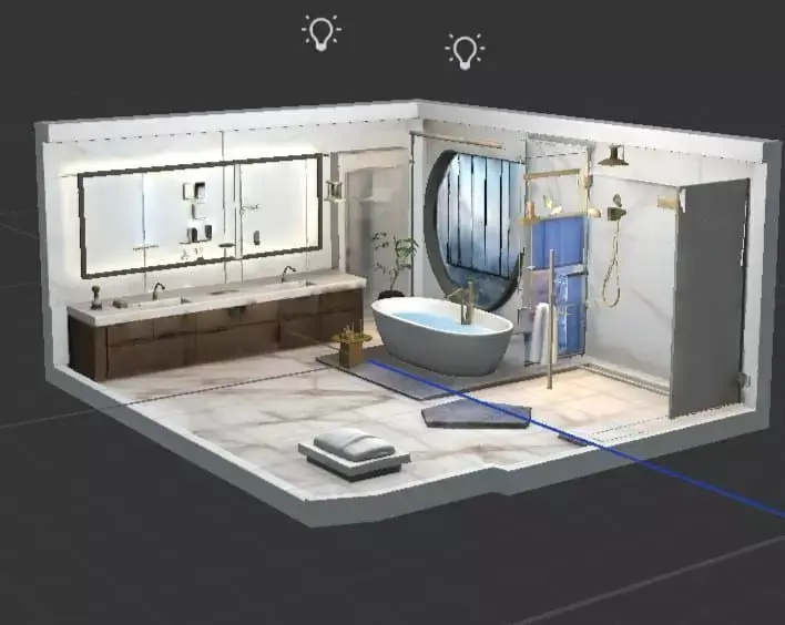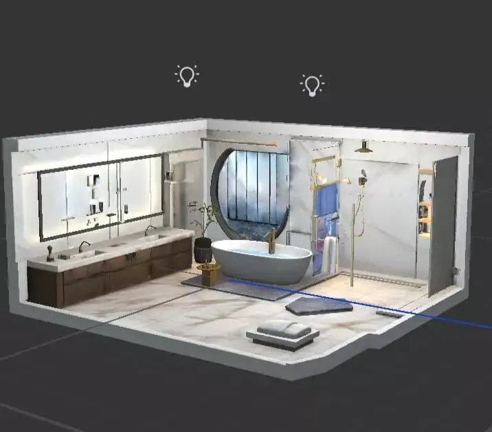 Este modelo 3D representa un baño moderno y elegante, diseñado para visualización arquitectónica, renders interiores y presentaciones inmobiliarias con un alto nivel de realismo.