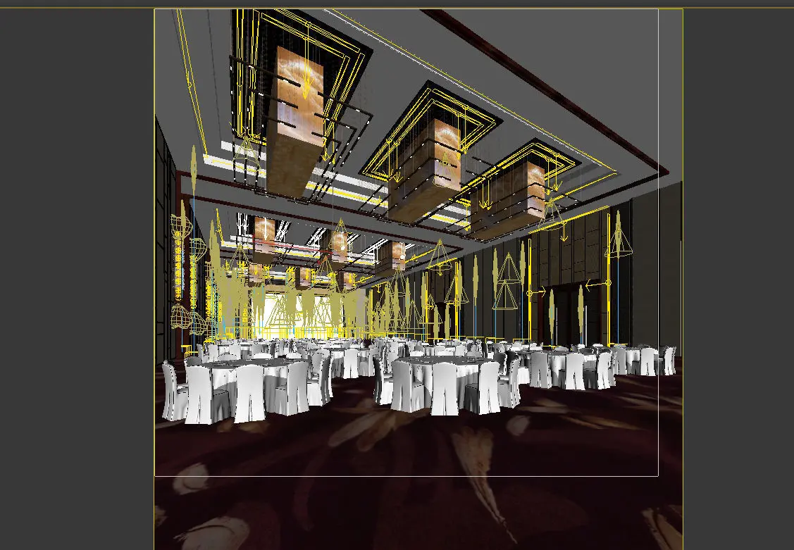 Banqueting room This is a ballroom design from a hotel in Australia. The design is very bold and the model is exaggerated. The model is consistent with the preview and there is no problem with file detection. I hope you like it! Since the crystal lamp model has many particles, there are many polygon faces and vertices.