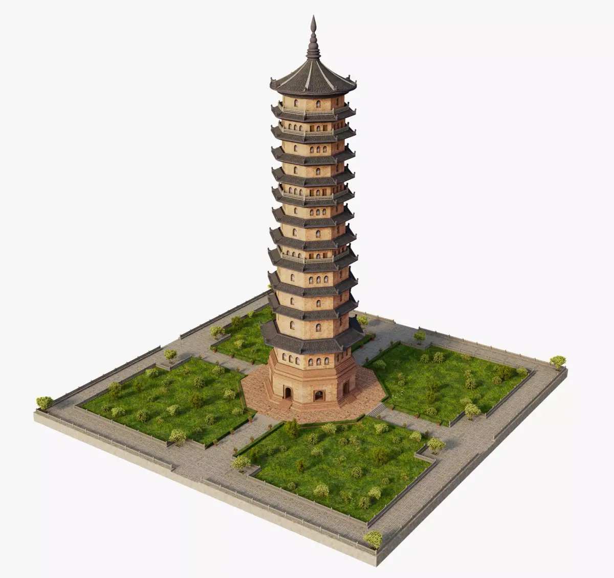 The model was originally modeled in Autodesk Maya, textured and rendered using Arnold Render.Modeled using polygons.With materials and textures.All the objects parent and group correctly.The file called ' render ' is to render like the first imatge with Arnold Render. For best results add a render occlusion on it.Formats mb,, fbx, Blender, Obj and 3dmax.These formats with basic materials and textures.Reduce nature( grass, trees etc----) if you want less polygons.