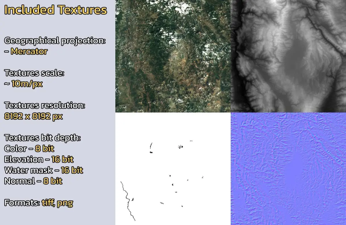 - Textures resolution: ~10m/px
