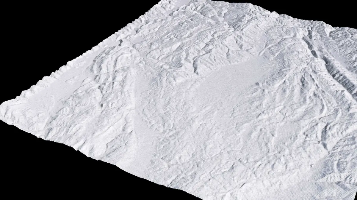 Originally created in Houdini 19. Final images rendered in Houdini. Data source is ASTER GDEM V3, ASTER WATER V1, Open Streep Maps 2022, Copernicus Sentinel 2016.