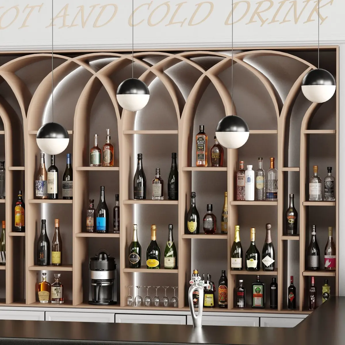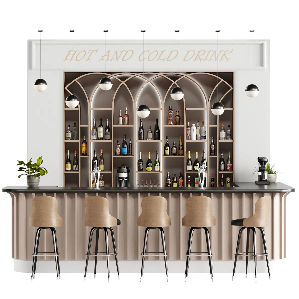 Bar 19 Hotel barAppliances, bottlesChampagne, Whiskey, vodka and LiqueursCoofee Makers,JuicerShelfs And ChiarsMax Version Is 2015Fbx,Obj