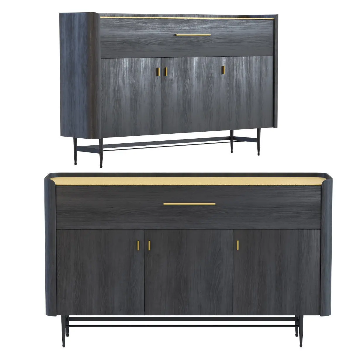 An elegant bar cabinet, manufactured from selected materials in the tradition of the finest Italian furniture design,The combination of black-brown solid oak and oak veneer with cream-coloured covers in a fine stingray skin look is full of characterThis designer furniture also has inner values: behind the double door there is storage space, together with compartments for 15 bottlesKeeps things tidy with a rack for stemmed glasses behind the third door, three compartments behind the wide upper flap and one compartment with a drawerAdded value: the doors have a soft-close function, while the height-adjustable feet compensate for any irregularities in the floorMaterial: Corpus: Poplar Plywood Veneered, Front: Oak Solid wood Lacquered, Worktop: Textile polyurethane-coated, Foot/Base: Steel lacquered, Handle: Steel brushed, Foot/Base: Adjustable in height, Door: Soft-close, Delivery Assembled, Maintenance and Cleaning: Art. No. 25002 Furniture Cleaner