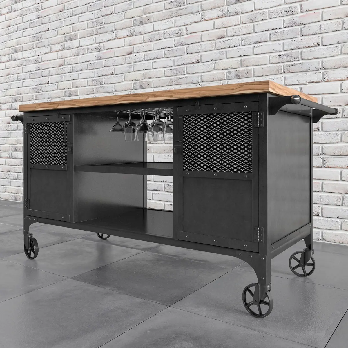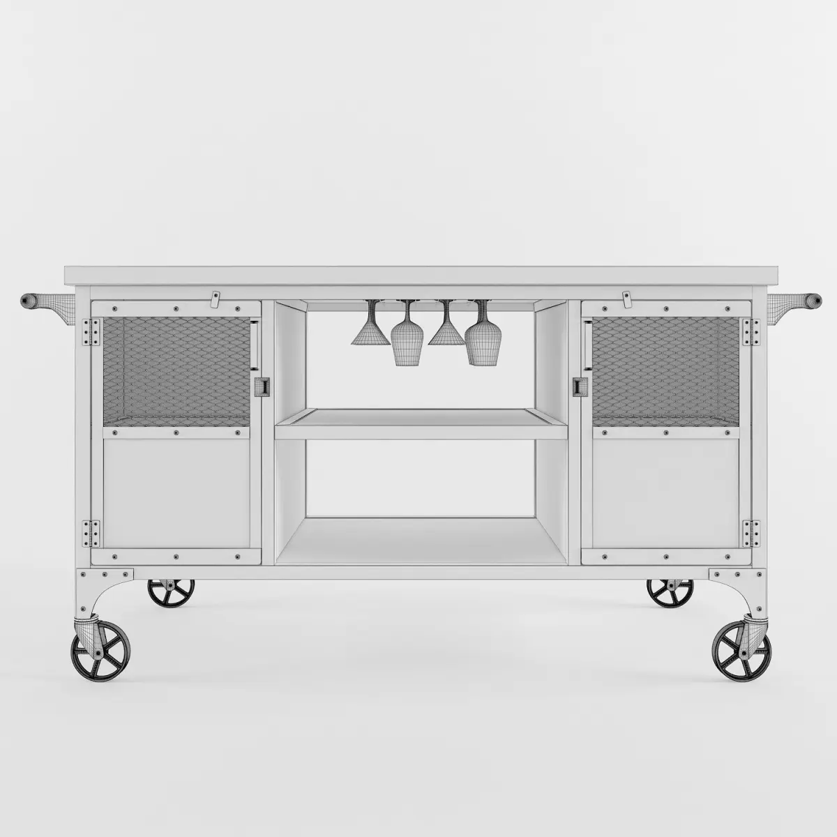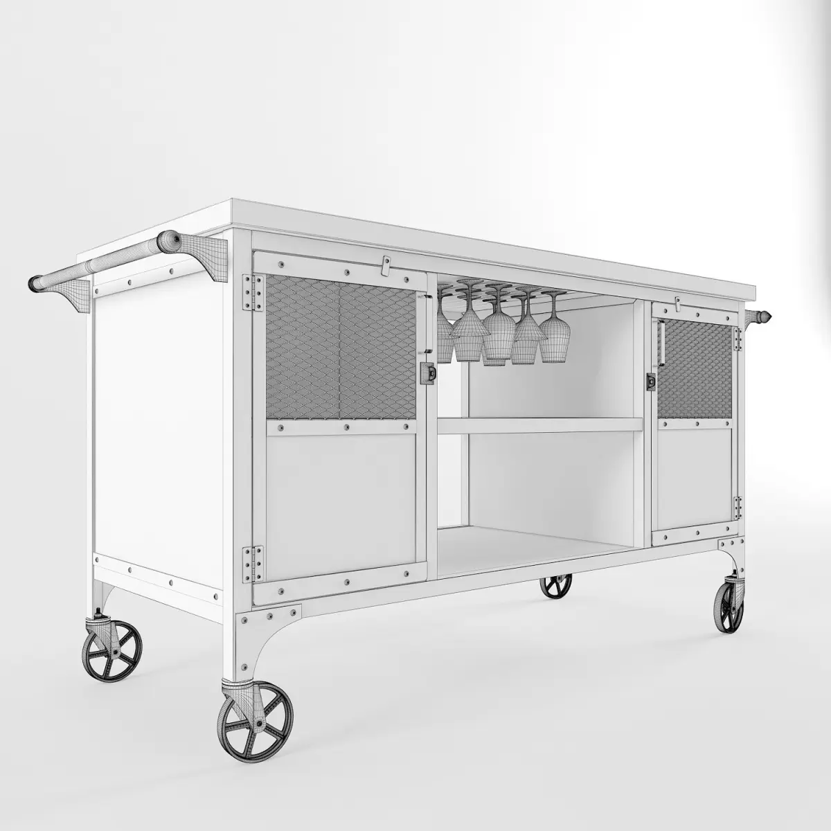 Industrial Rolling Handmade Bar CartProducer: 'JRealFurniture'Dimensions: 1750 * 610 * 890 (69 'x 24' x 35)Polys: 371736Verts: 371392Tags: bar, bar cart, industrial, loft, Vintage