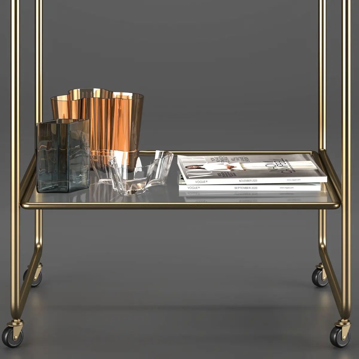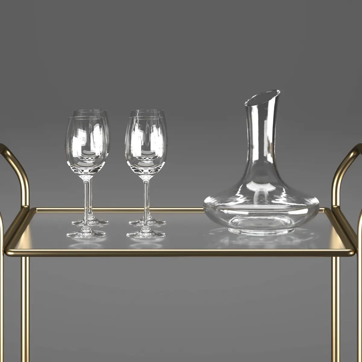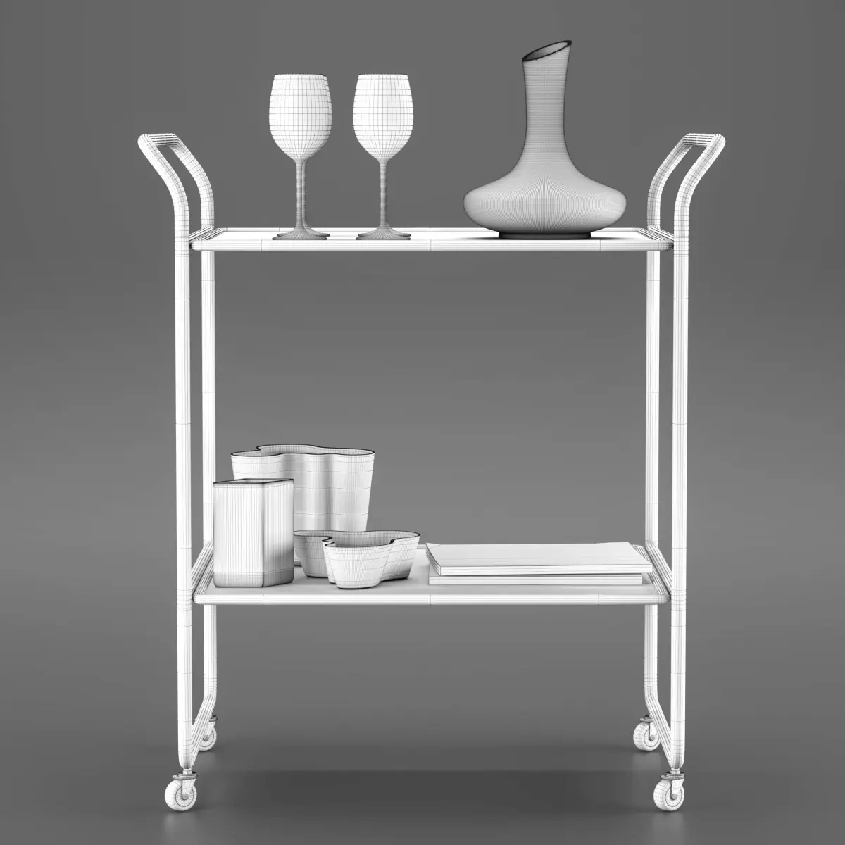 Bar Cart includes; wine glasses, carafe, Alvar Aalto vase, Alvar Aalto bowl, Ruutu Vase and Vogue magazines.