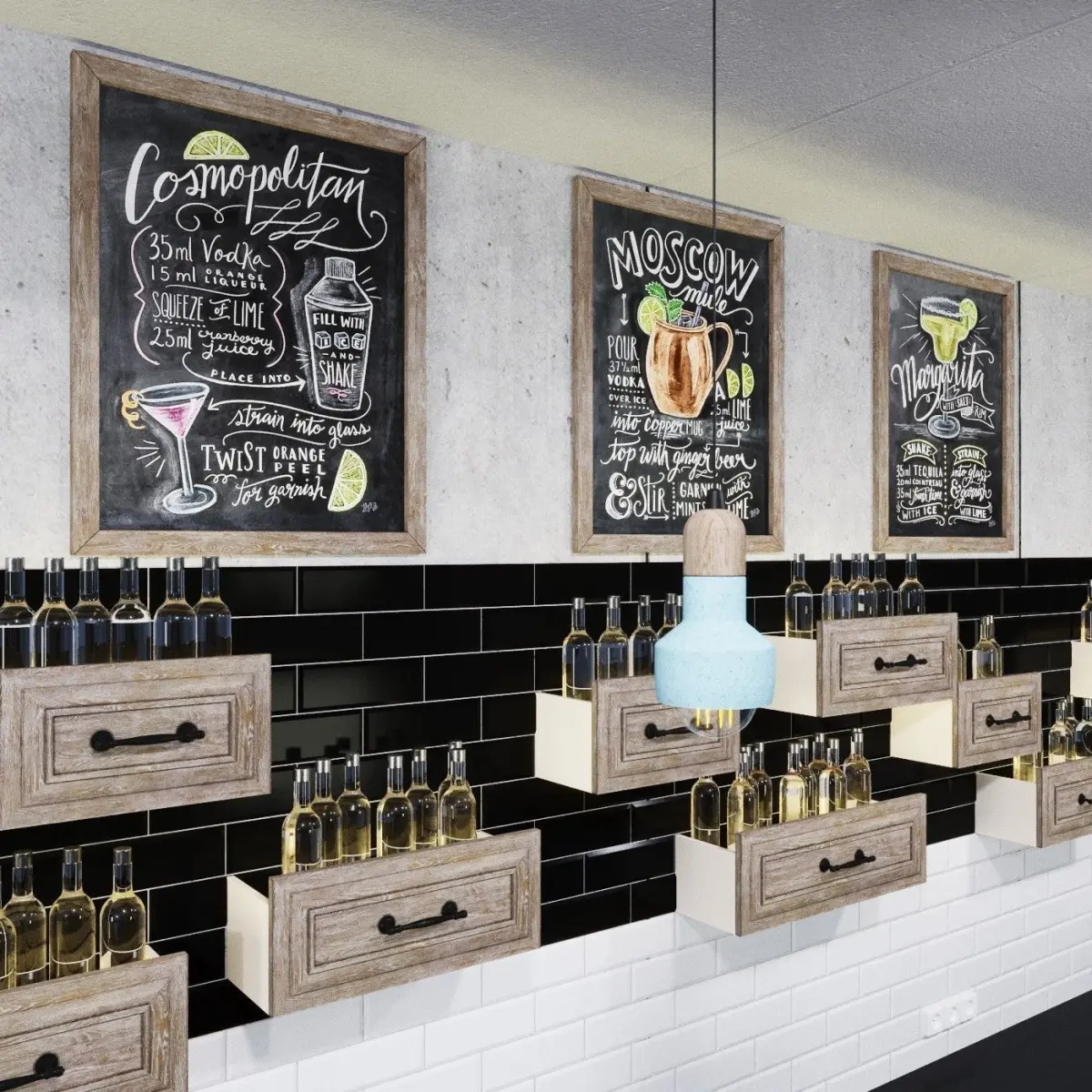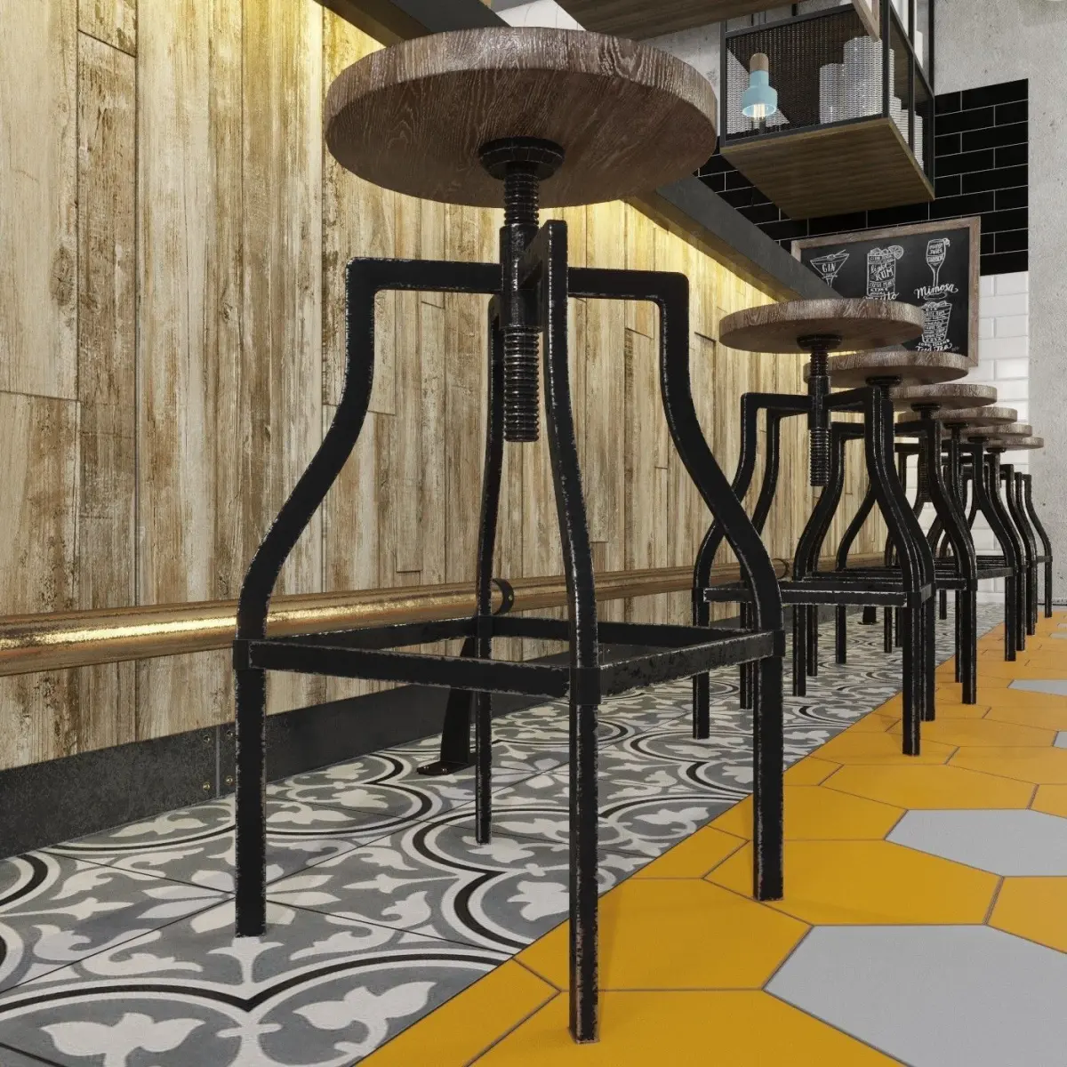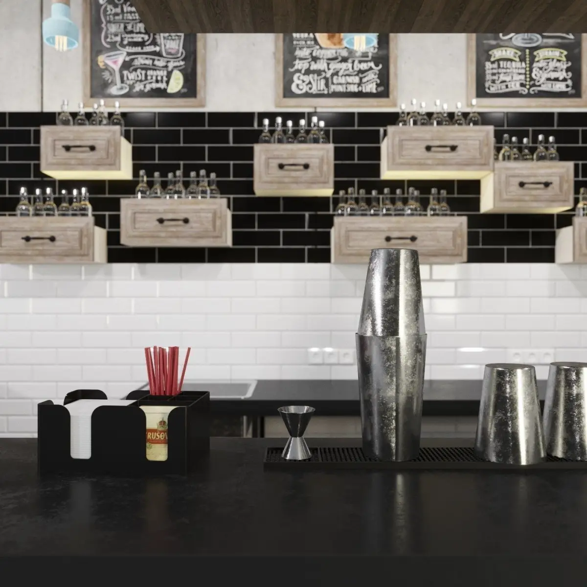 The bar counter.The model contains all of the specified to preview.Ready for installation of the main equipment.Lamp - Loftdesigne 809 modelBar chair - Loftdesigne 3586 model