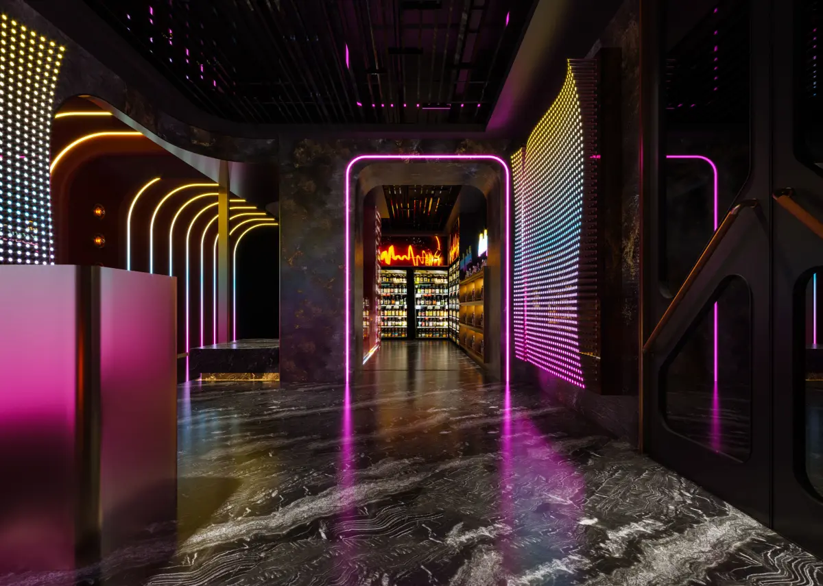 Some new materials were used to create the atmosphere of the bar, and lighting is crucial in industrial spaces. Therefore, a lot of time was spent on the production of lighting, using CR6.0
