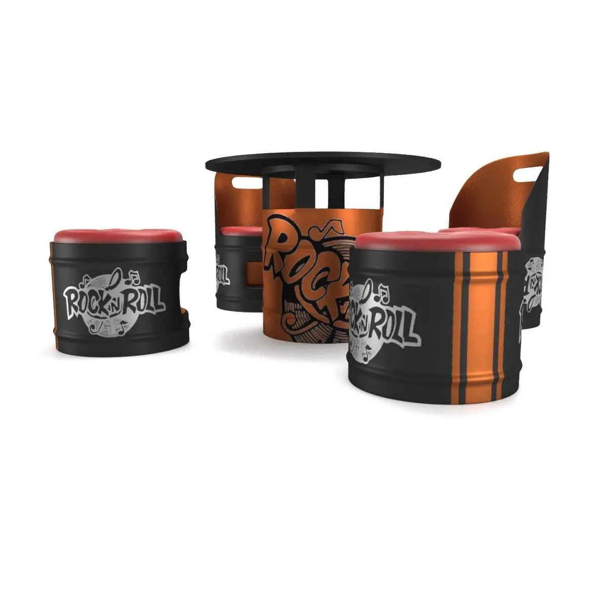 A set of furniture for the bar in the style of Industrial. This model is suitable for rock or biker bar design