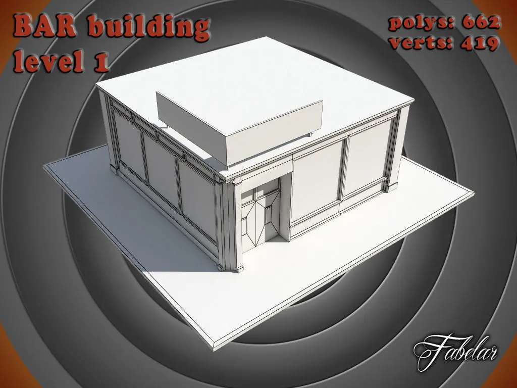 Bar building level 1 lowpoly 3D model. Vray, scanline, multiple import formats.