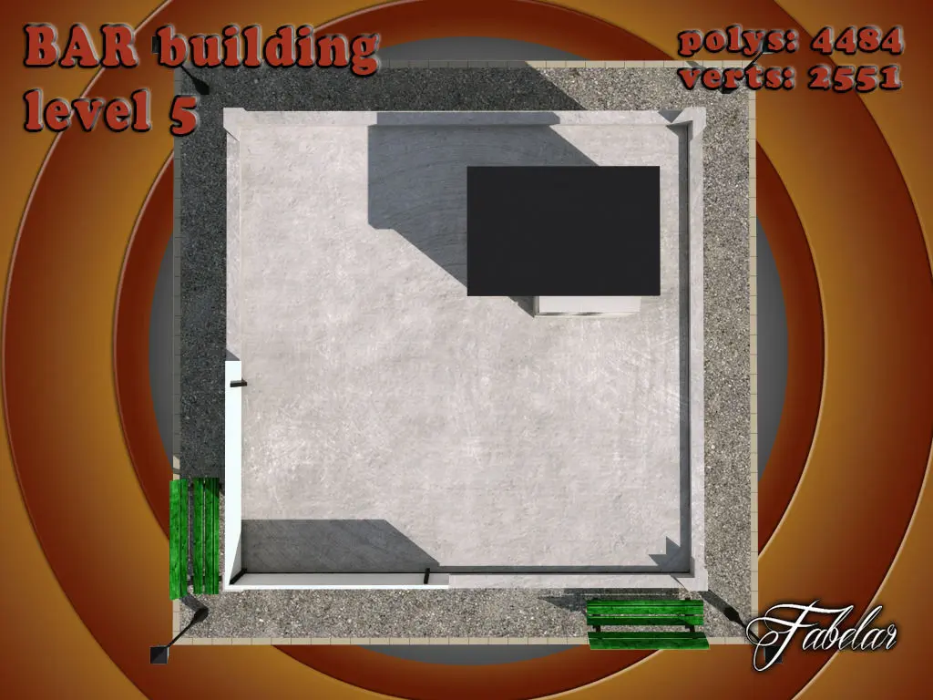 Bar building level 5 lowpoly 3D model. Vray, scanline, multiple import formats.