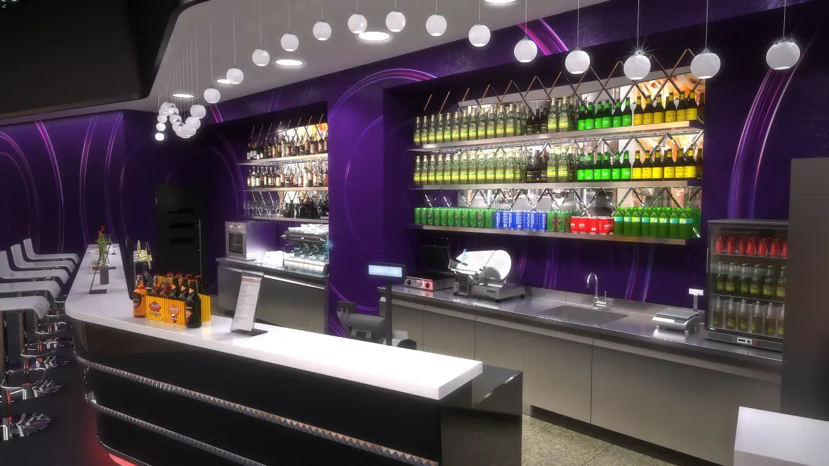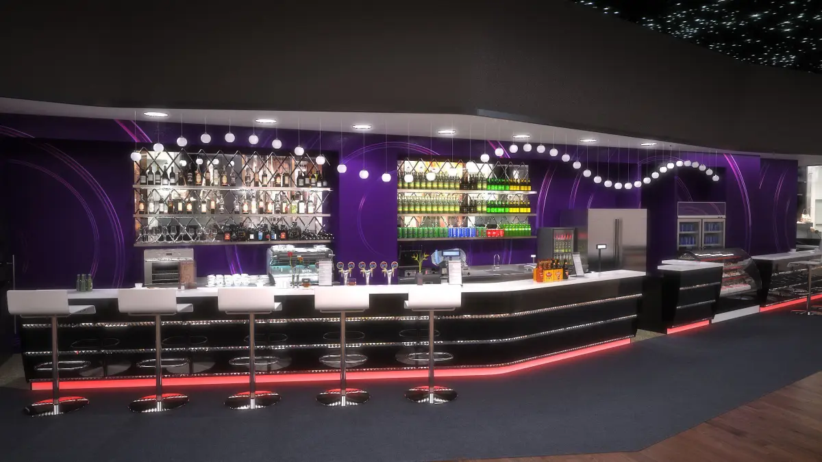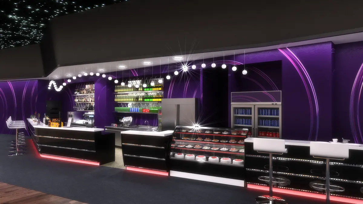 Ready to render scene of a contemporary Lounge Bar in cinema