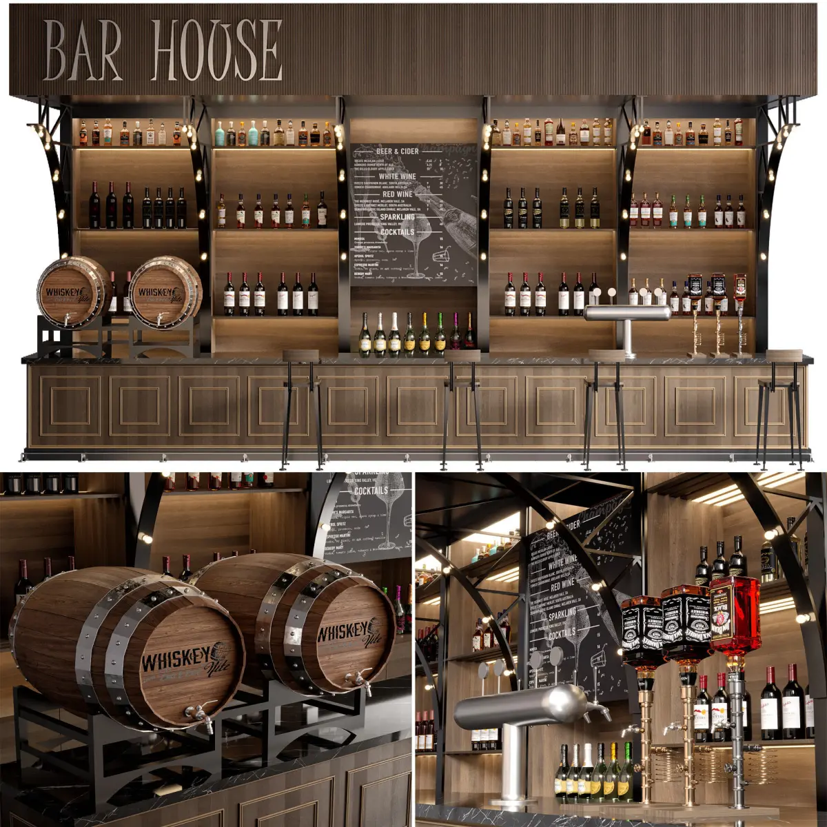 it includes different high poly and detailed objects like chairs,whiskey bottles,wine bottles,champagne,bucket,decanter and....
