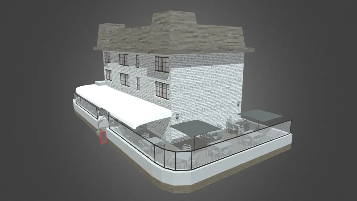 This model contains a great scene from a Bar Restaurant Hotel, NO INTERIOR (just a terrace with some chairs and tables). The outliner is divided in every name for every part of the scene. Very well organized, as i said before, any problem you have or doubt, contact me and i will help you. If you need any other picture or video tell me.