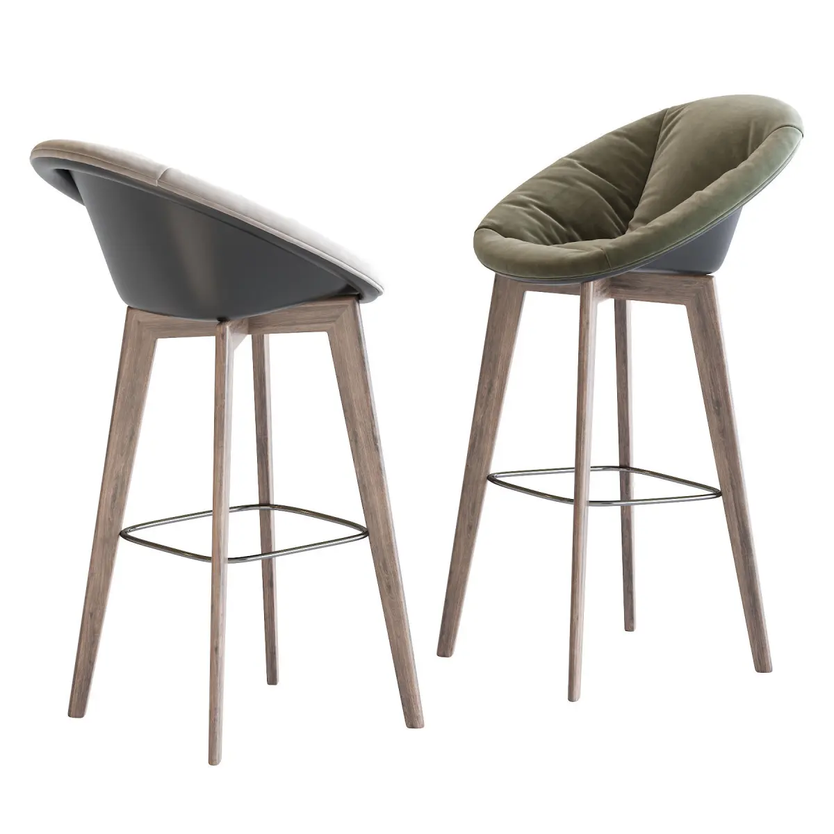 There are many different types, construction materials and models. Bar stools are often made of wood or metal. There are bar stools with and without armrests, backs, and padding or upholstery on the seat surface. Bar stools can range from basic wooden designs to more complex ones with adjustable height. Extra tall and extra short are common features, as well as indoor bar stools and outdoor bar stools. Some bar stools have backs, while most do not. In commercial settings, swivel and floor mounted bar stools are common. Floor mounting renders the stool immovable, so it cannot be stolen or used as a weapon in a bar fight. Floor-mounted stools generally are mounted on a column, but stools with legs can also be secured to the floor using metal brackets.