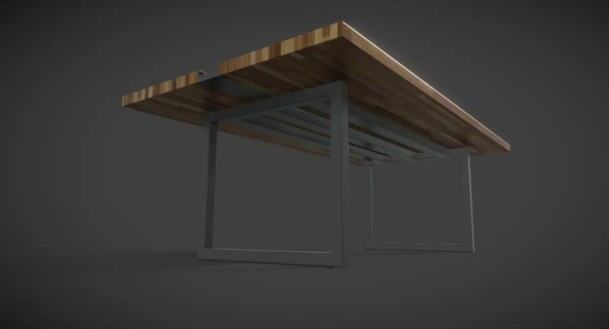 Table for bars, fast-food, gas stations, office rest rooms, and others, with an industrial look, in PBR materials. Simple design, wood over iron, with a shelf in the middle to carrie bar things. Could be also used in receptions and lounges.