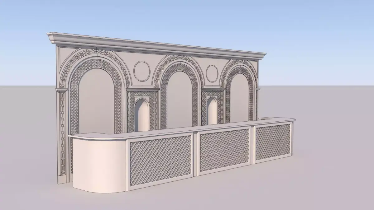 A modern bar 3D model features clean geometry, premium materials, and functional detailing suited for hospitality interiors. The design combines sleek cabinetry with matte and glossy finishes, integrated LED accent lighting, and a refined color palette. High-resolution textures represent wood veneers, stone or concrete counters, metal trims, and glass shelving. The model includes realistic proportions, rounded edges, and optimized topology for smooth rendering. Modular elements allow easy customization of layout and size. PBR workflows ensure accurate reflections and shadows. Ideal for restaurants, lounges, and residential bars, the asset delivers contemporary aesthetics, realism, and efficient performance across render engines platforms worldwide.