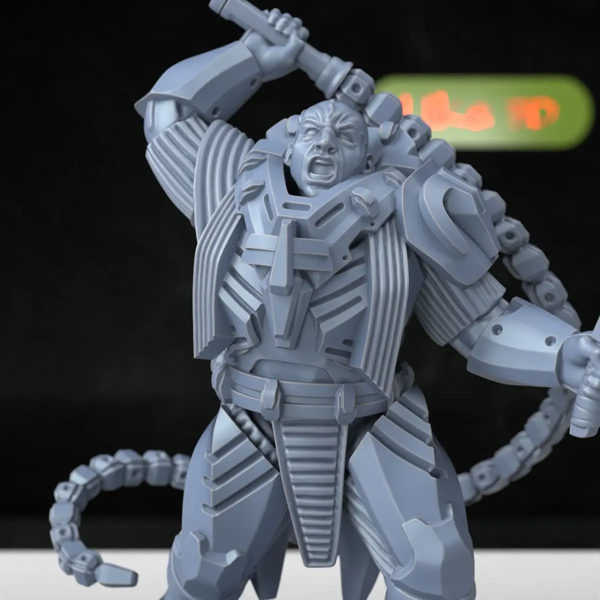 Count Shannon Miniature, a captivating portrayal from the Arrakis, Dune, Dune 2 Universe. This intricately crafted figurine showcases Count Shannon in full sci-fi armor, wielding a sword in his right hand and advanced binoculars with thermal and range capabilities in his left. With long hair, a flowing beard, and a regal cape, Count Shannon exudes authority and strength.