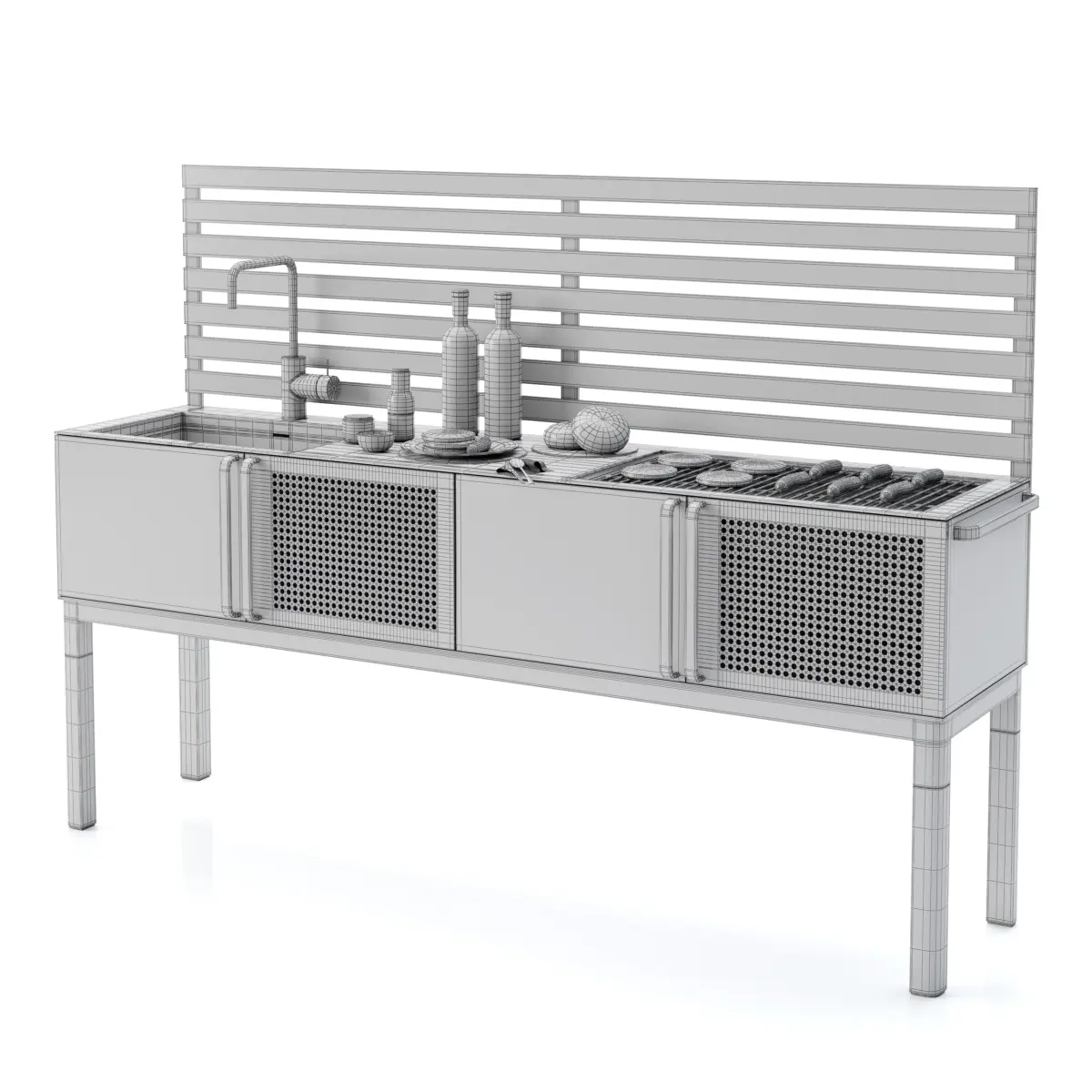 The archive contains:Max 2015 Vray - CoronaObjQuads onlyAll objects and materials are logically named.Black Barbecue with SinkContaine foods, Drinks and Dishes.Dimensions: L 215Cm B 52Cm, H 145Cm
