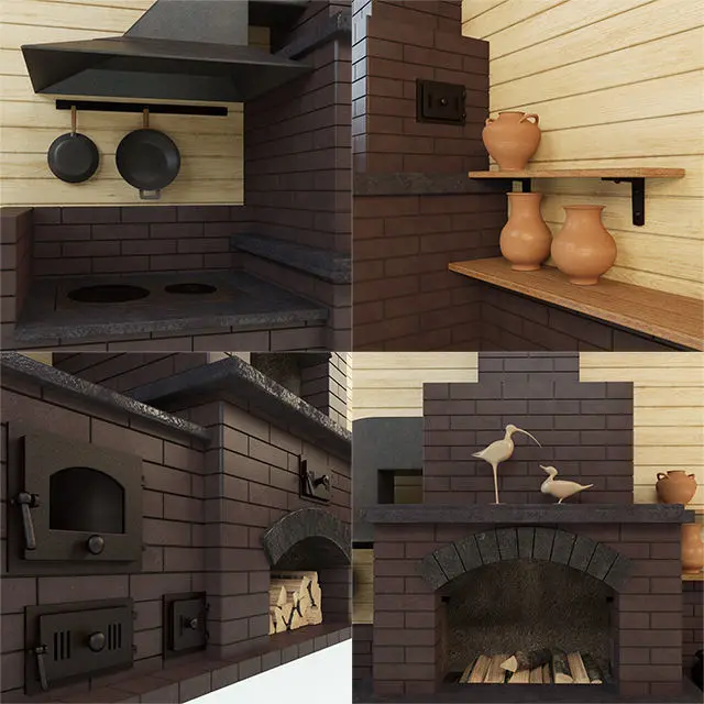 HomeCatalogbarbecue brick oven with pots and pans 3D model