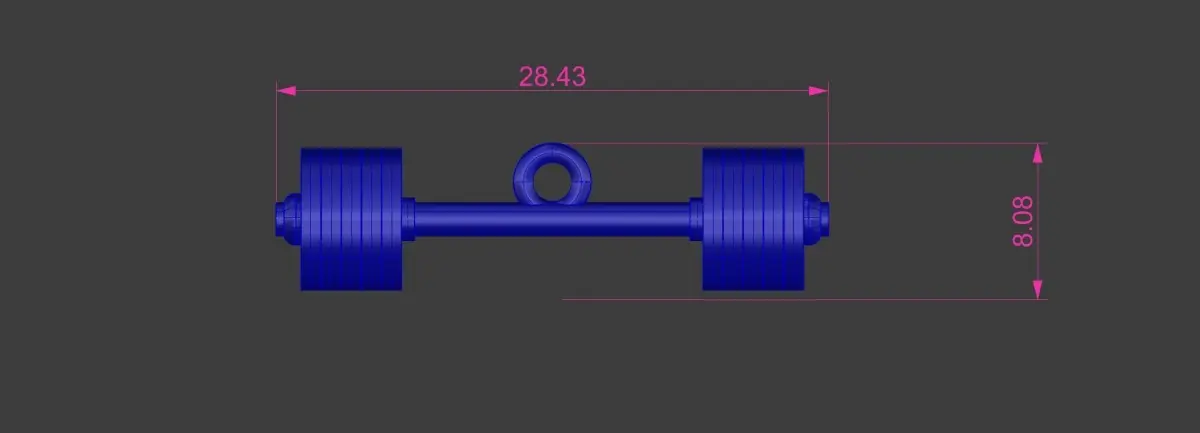 Barbell pendant model up for sale. A little over an inch wide. All dimensions are in the last two pictures.