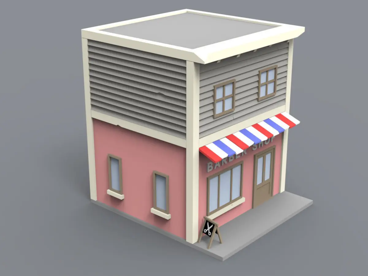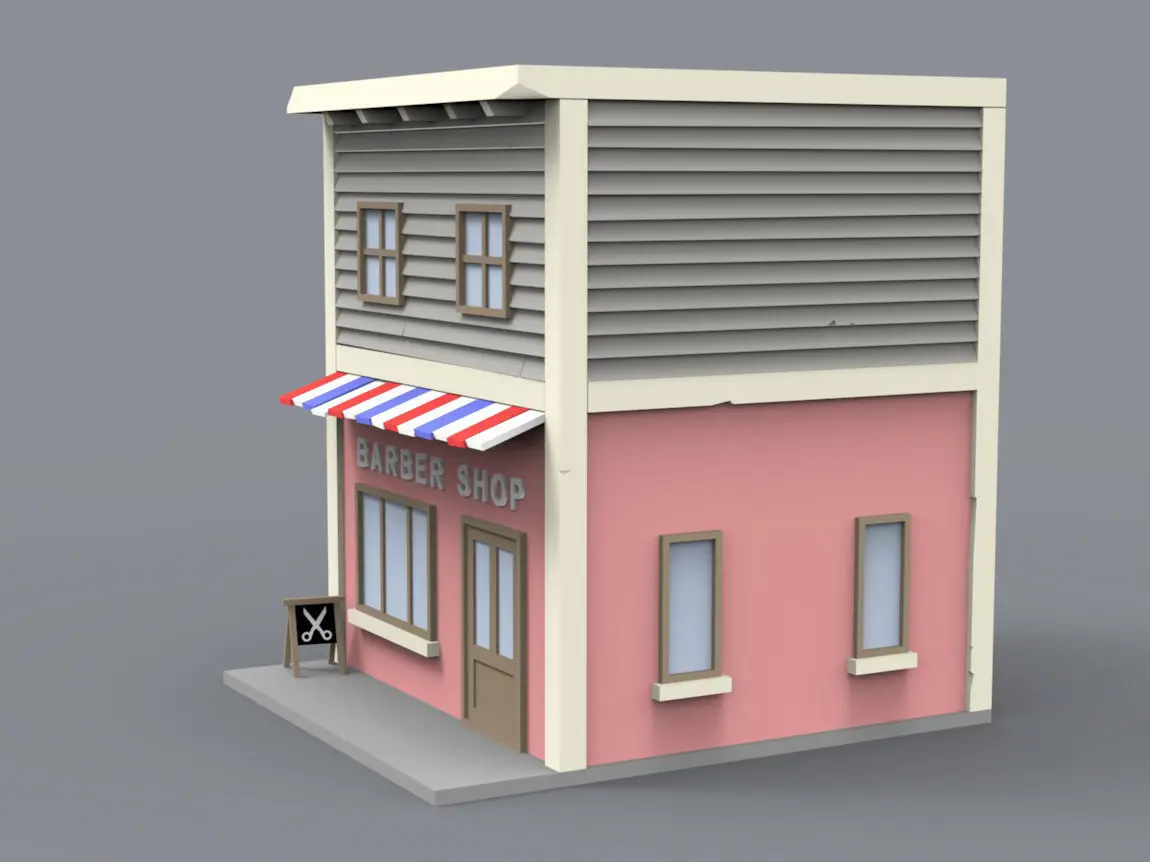 This Barber shop model was created for use in video game or 3d printing. You will see in my models another block house model and you can create a little town. hope you like it and i ll be back soon with new block or house model. If you want a special model tell me. All good. Thank s.