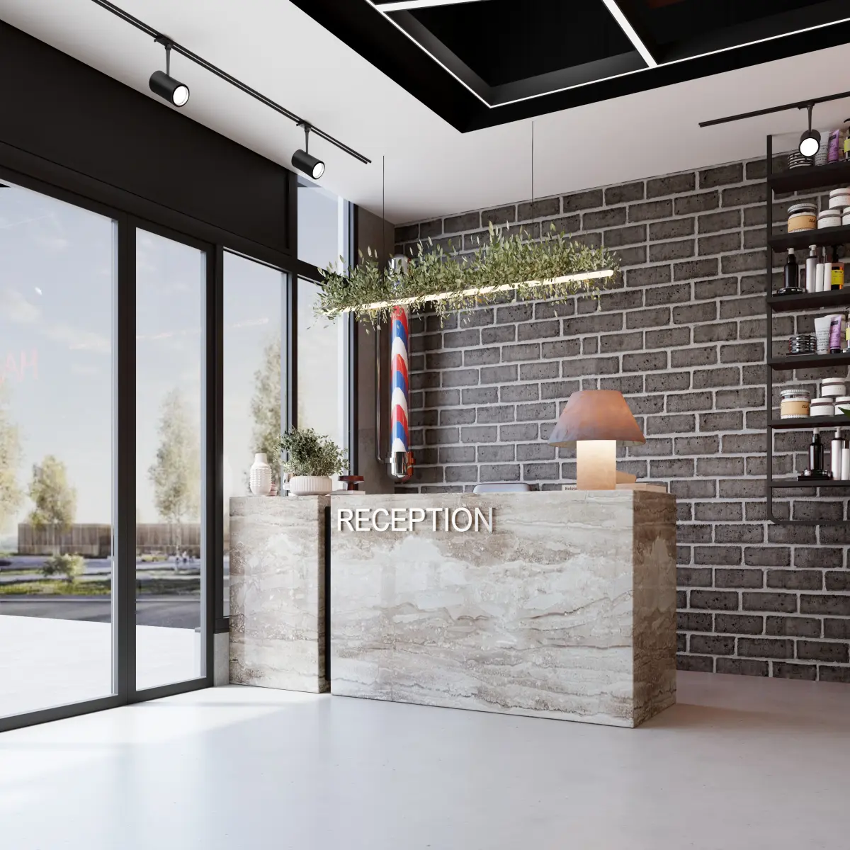 Its an Industrial Barbershop design full scene with textures and lighting,this scene is also made with vray and realtime render chaos vantage u can use it both but adjust the lighting multiplier if u will use vray 3Ds Max and Vray (if you need any other format just contact me)