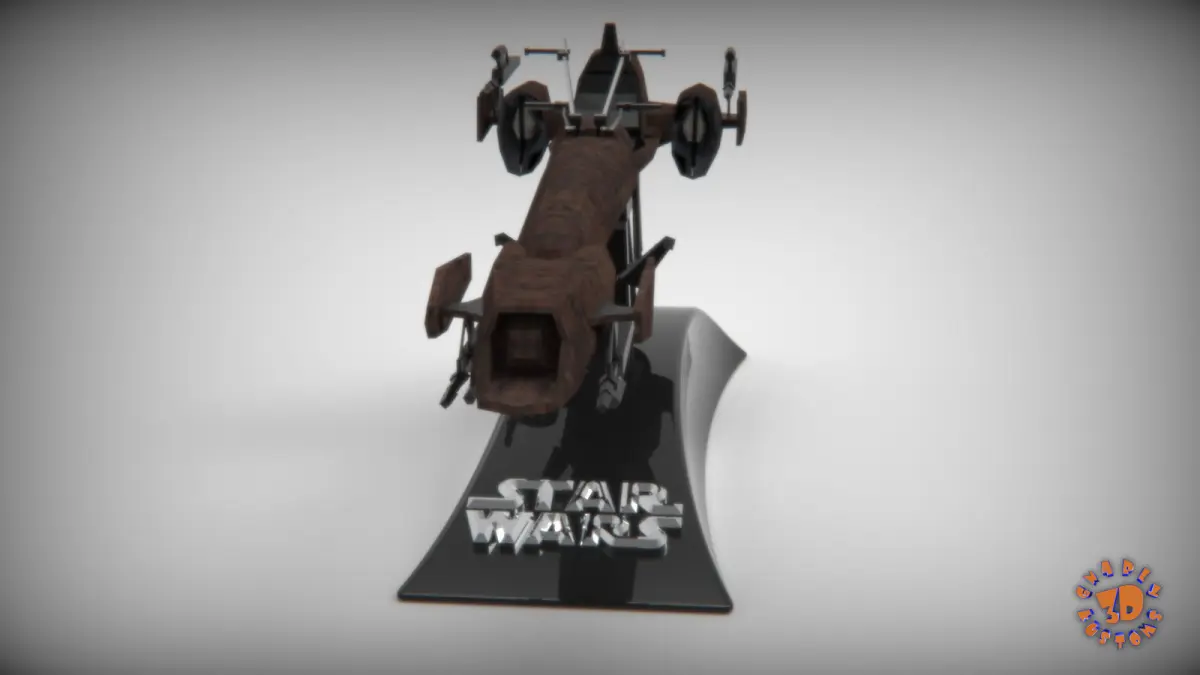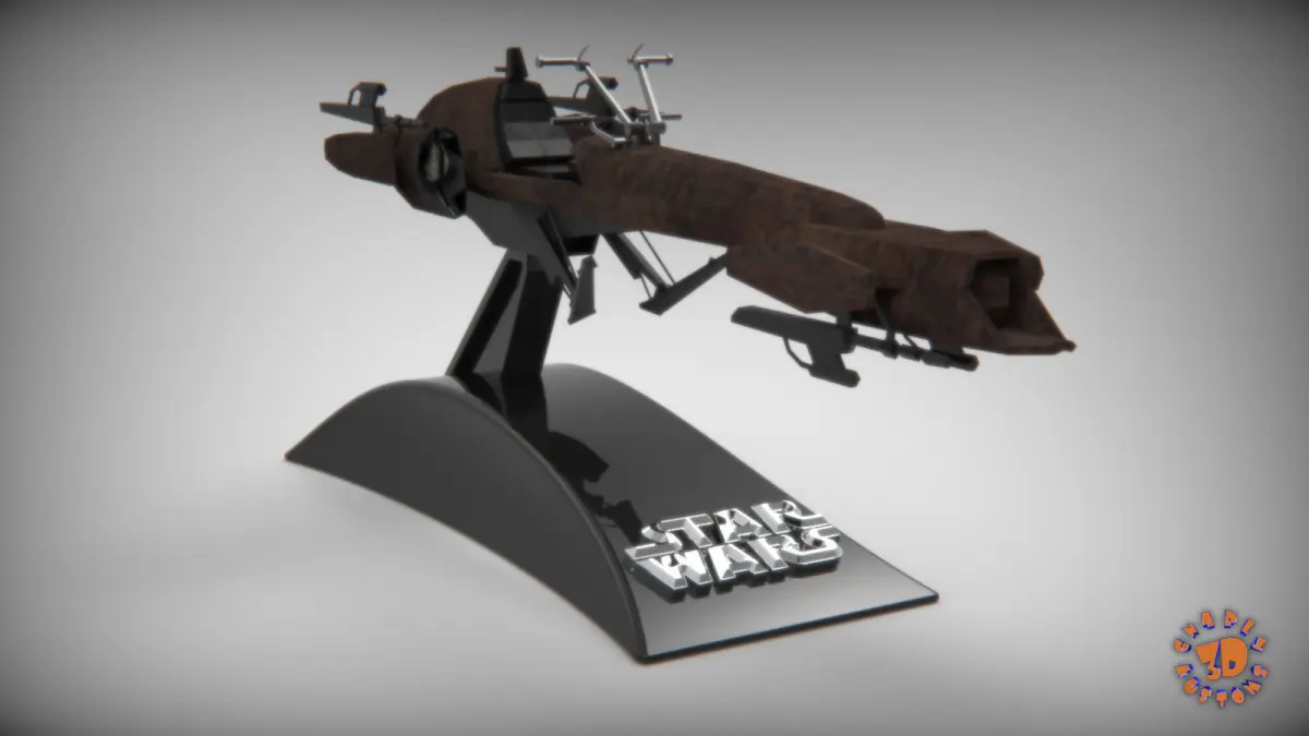 BARC SPEEDERAn army is only as effective as its mobility, so the Grand Army of the Republic was outfitted with an increasingly varied and versatile vehicle pool as the Clone Wars progressed. The BARC speeder gave a single clone trooper increased operational range, great speed, mobility, and firepower otherwise unavailable to the foot soldier. A more aggressive and bulkier design than slimmer speeder bikes used by the Jedi, the BARC speeder was used in scouting and escort missions on a variety of worlds. They were easily adaptable, with support struts that could be added to hold a stretcher or sidecar.