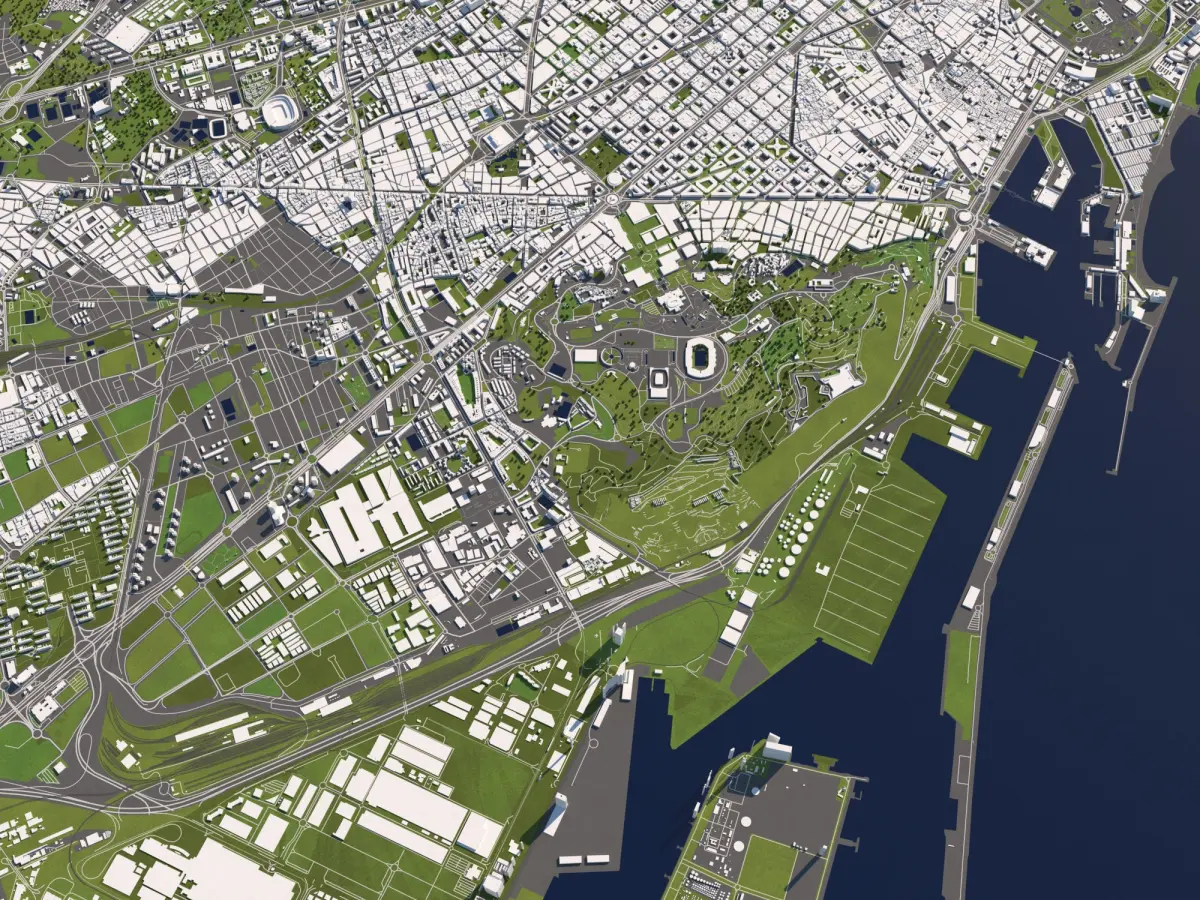 A DETAILED 3D MODEL CITY MAP OF BARCELONA, CATALUNYA, SPAIN: