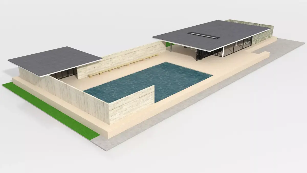 Detailed 3D model of Barcelona Pavilion designed by Ludwig Mies van der Rohe and Lilly Reich , an important building in the history of modern architecture