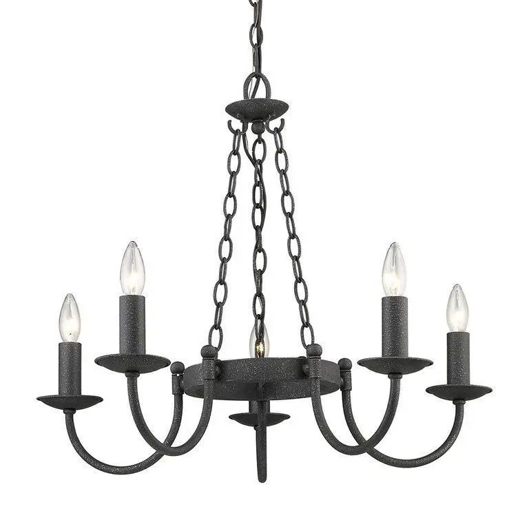 - Inspired by designs of ages past, this chandelier is sure to grab glances in the entryway or dangling over the dining table as it casts a warm, relaxing glow throughout your space. Its steel frame features swooping arms ending in candle-style fixtures topped with candelabra bulbs to complete the old-world look.