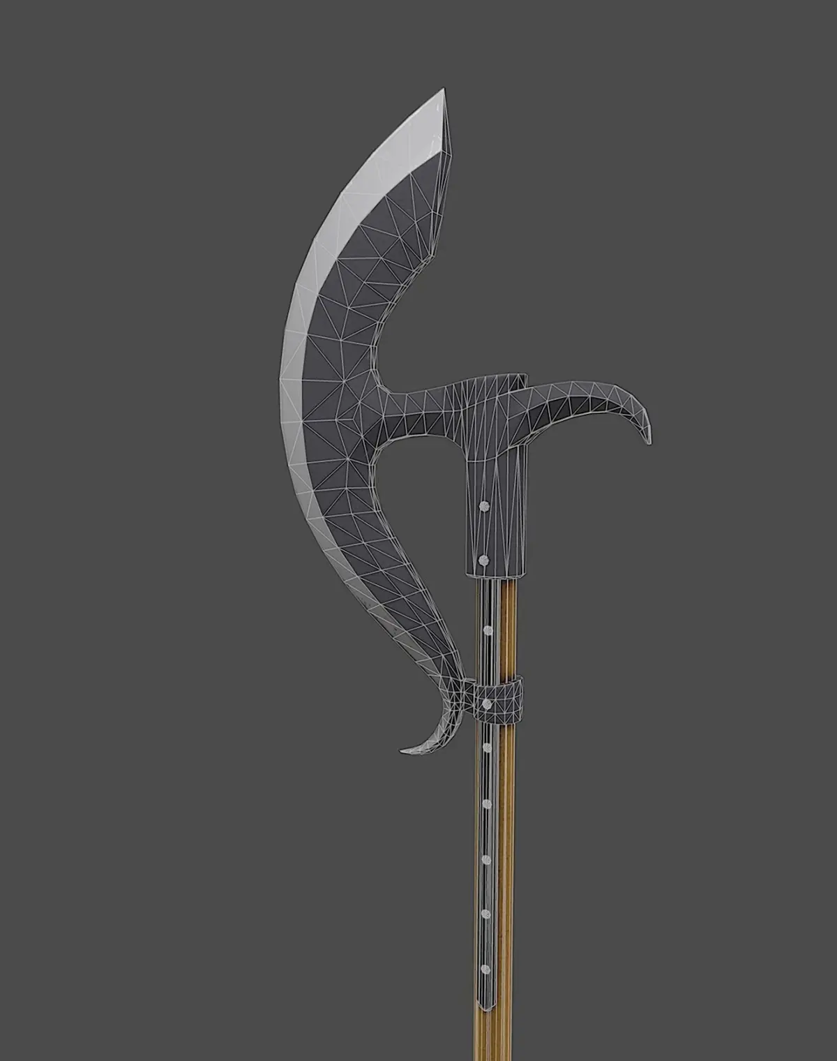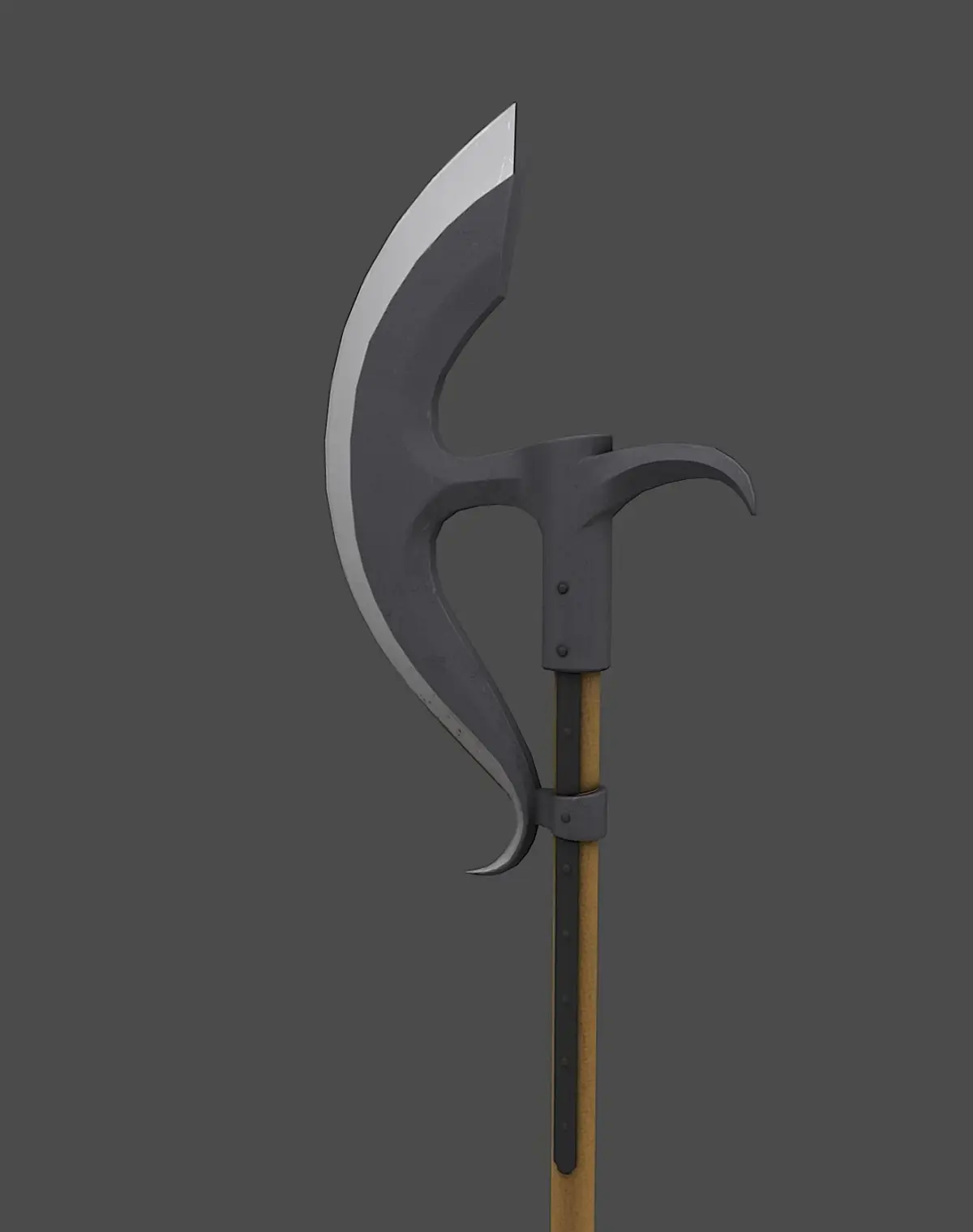 This tow-handed axe is known under the name bardiche. It has a slicing blade on one end and hook on the other. The distinction of a bardiche is that the blade is attached to the pole in two places. The bardiche is a type of polearm.The model is low-poly ,gameready.It has full set of textures including color map which can be used for faster selection of the different materials. The color map can be used as a mask when imported to drawing software.Diffuse 2048 x 2048Normal 2048 x 2048Spec & Gloss( Gloss is in the alpha channel) 2048 x 2048Height 2048 x 2048
